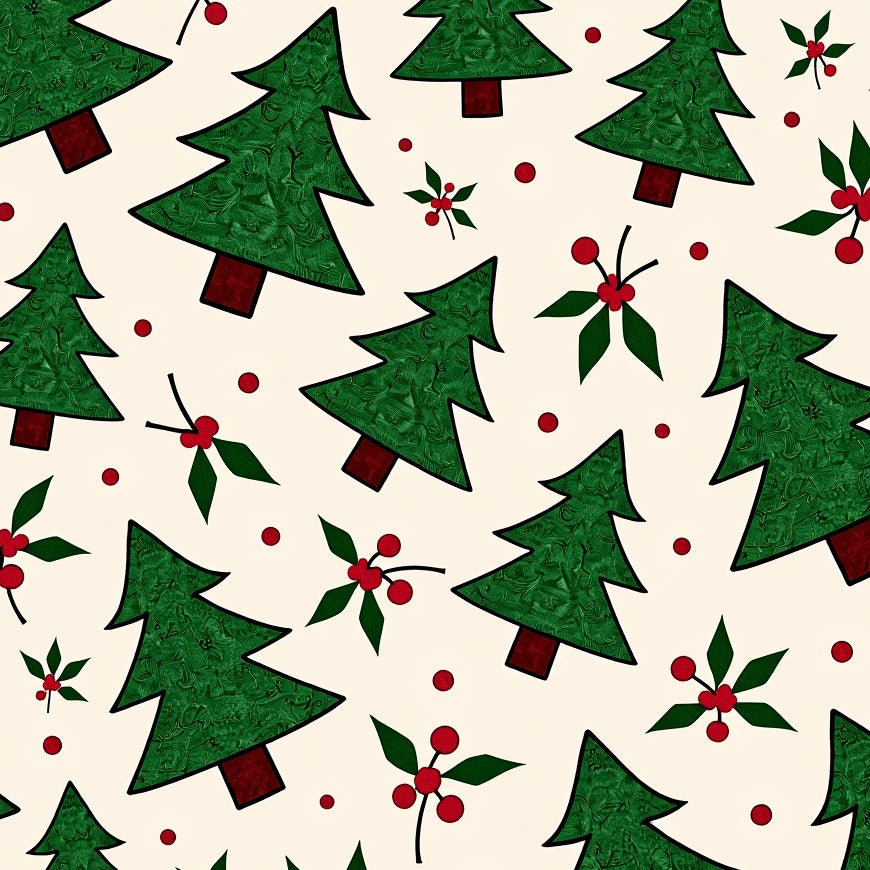 Charming Christmas Tree Patchwork with Holly Berry Accents(Beige)