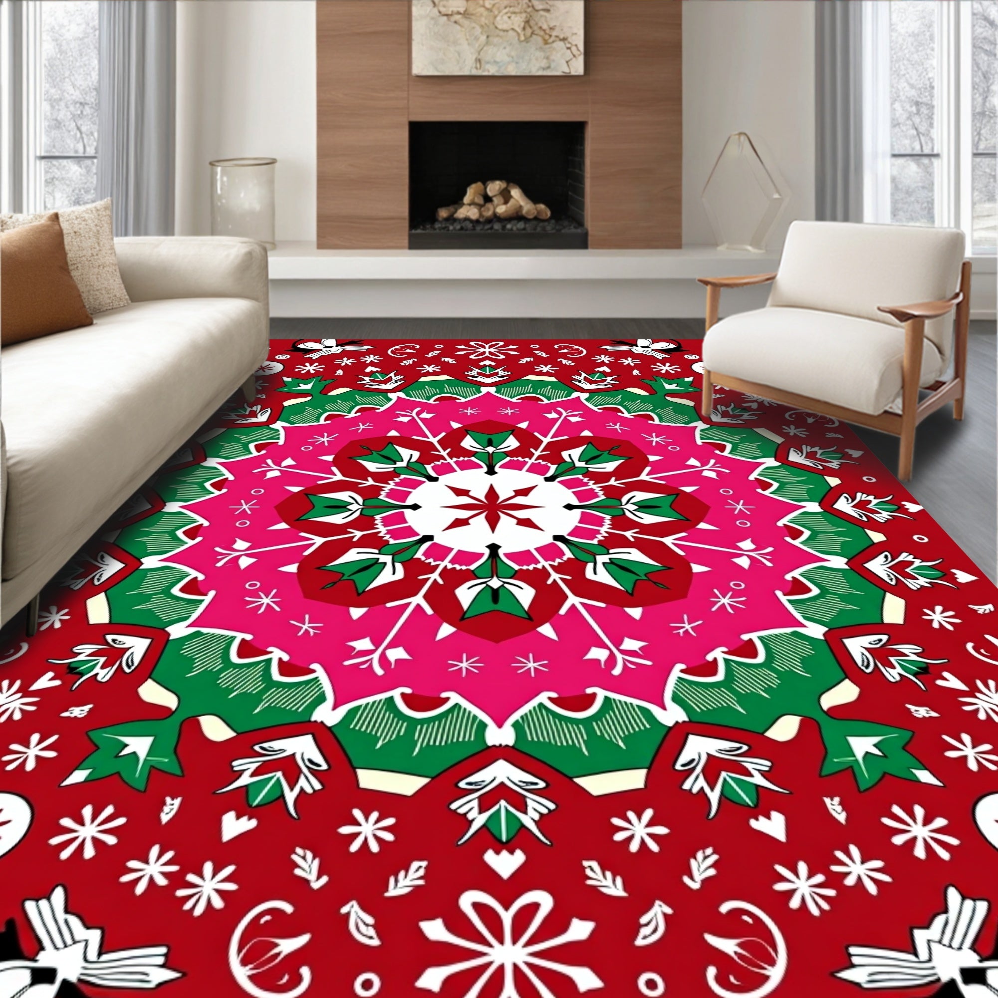 Festive Gnome Snowflake Medallion Doormat with Holiday Candles Design(Pink)