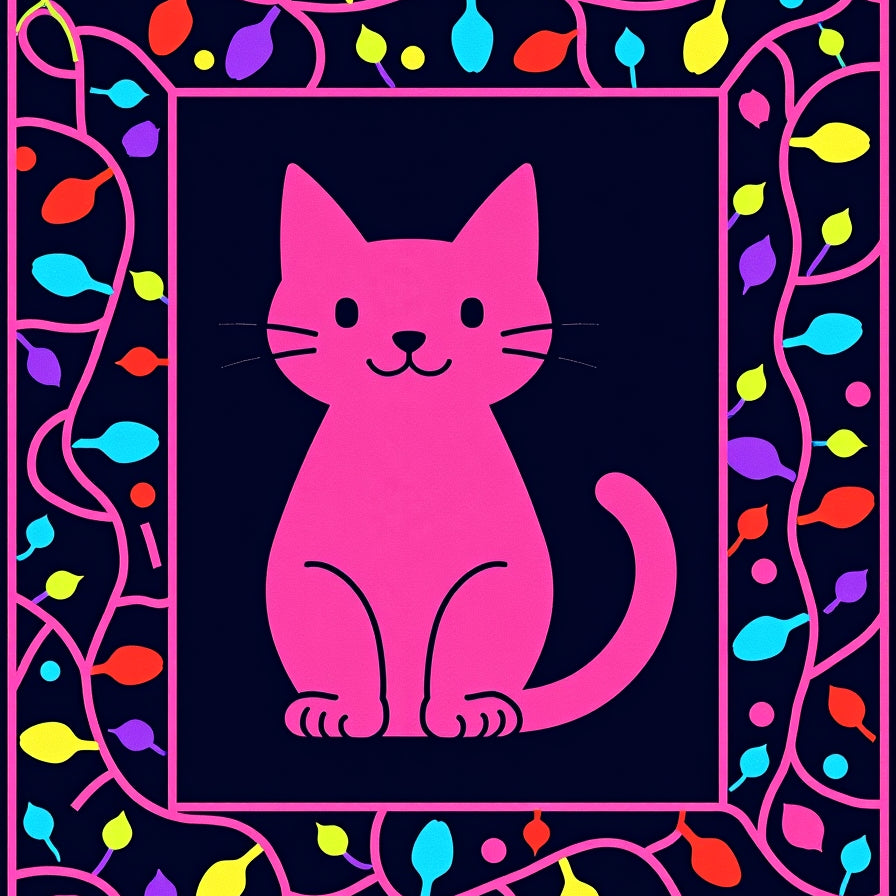 Festive Cat Outline with Twinkling Light Motif and Playful Charred Accents(Pink)