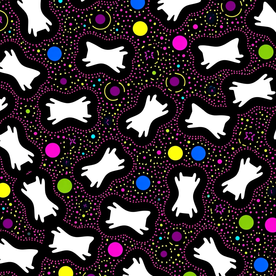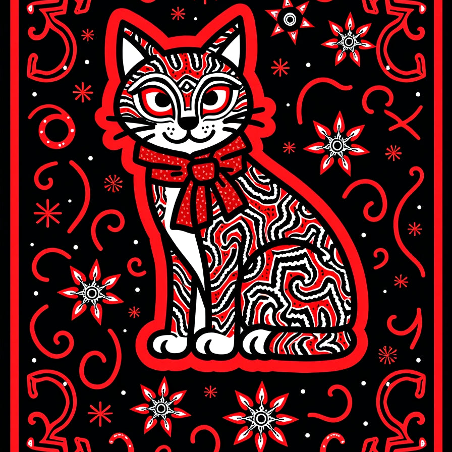 Whimsical Tinsel Cat and Twinkling Starburst Motif(Black)