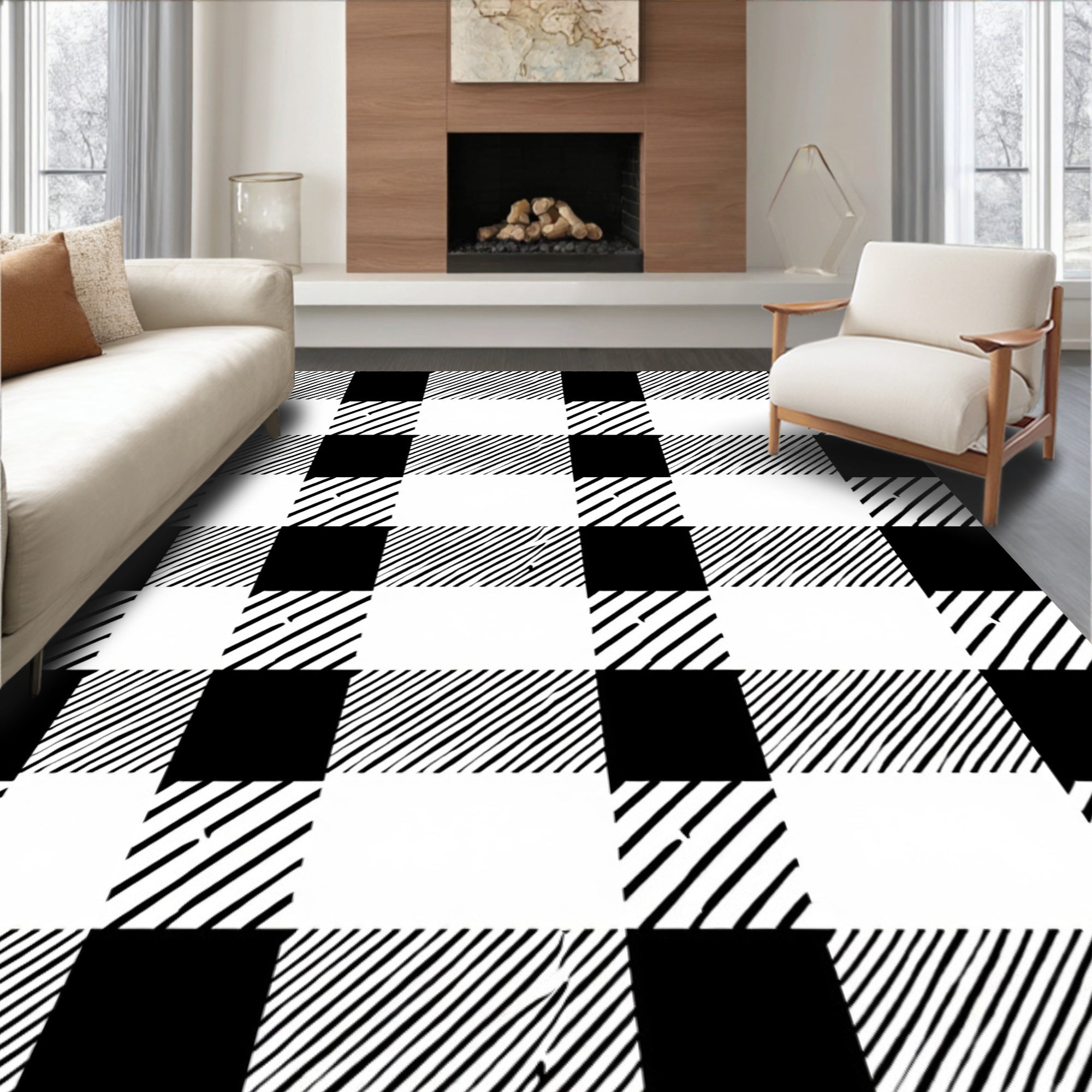 Welcome ish Checkered Plaid Entry with Bold Contrast Stripes(Black)