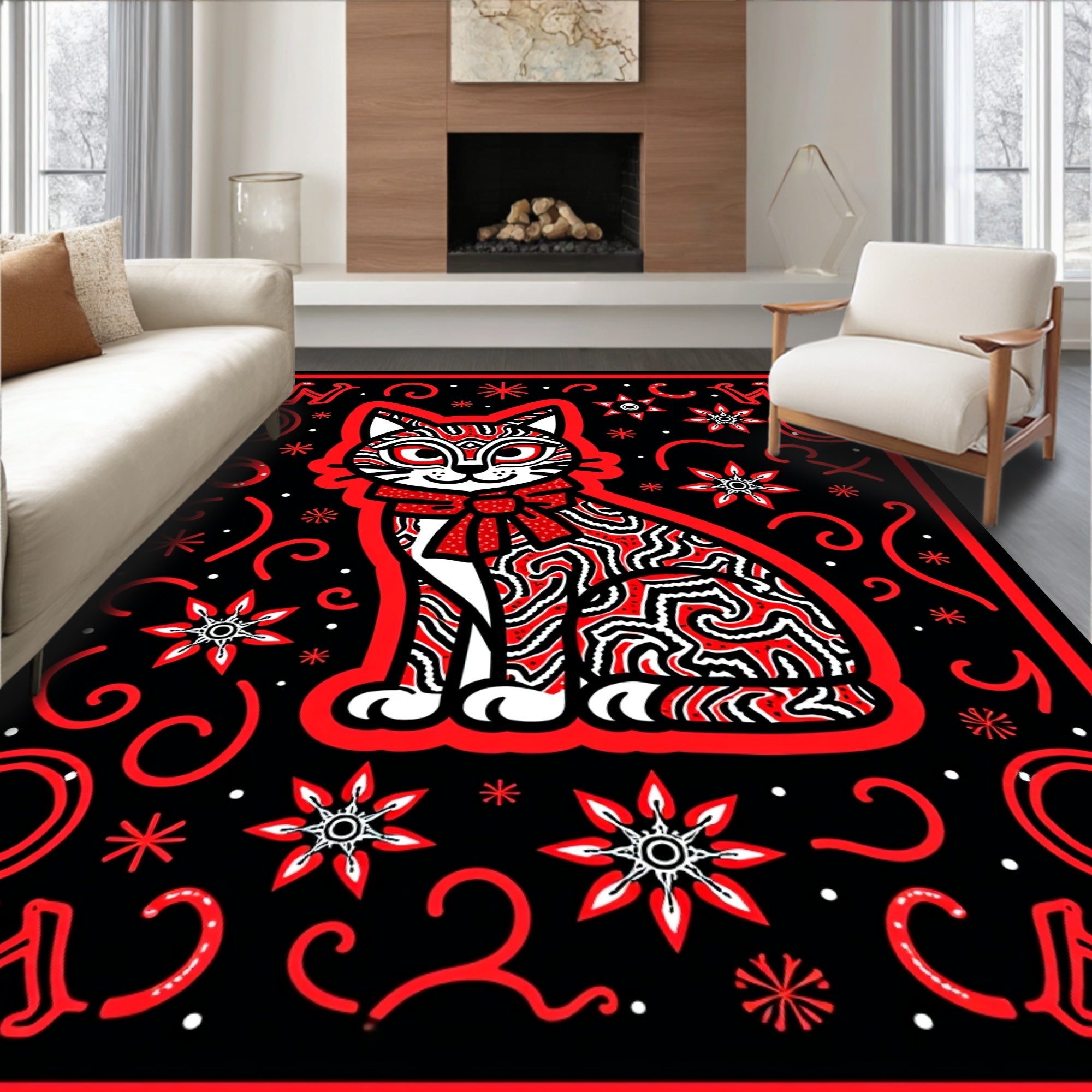 Amusing Radiant Paws Floor Covering Jolly Twinkling Whiskers(Black)