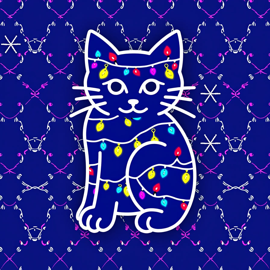 Playful Holiday Cat Trace with Sparkling Festive String Lights(Blue)