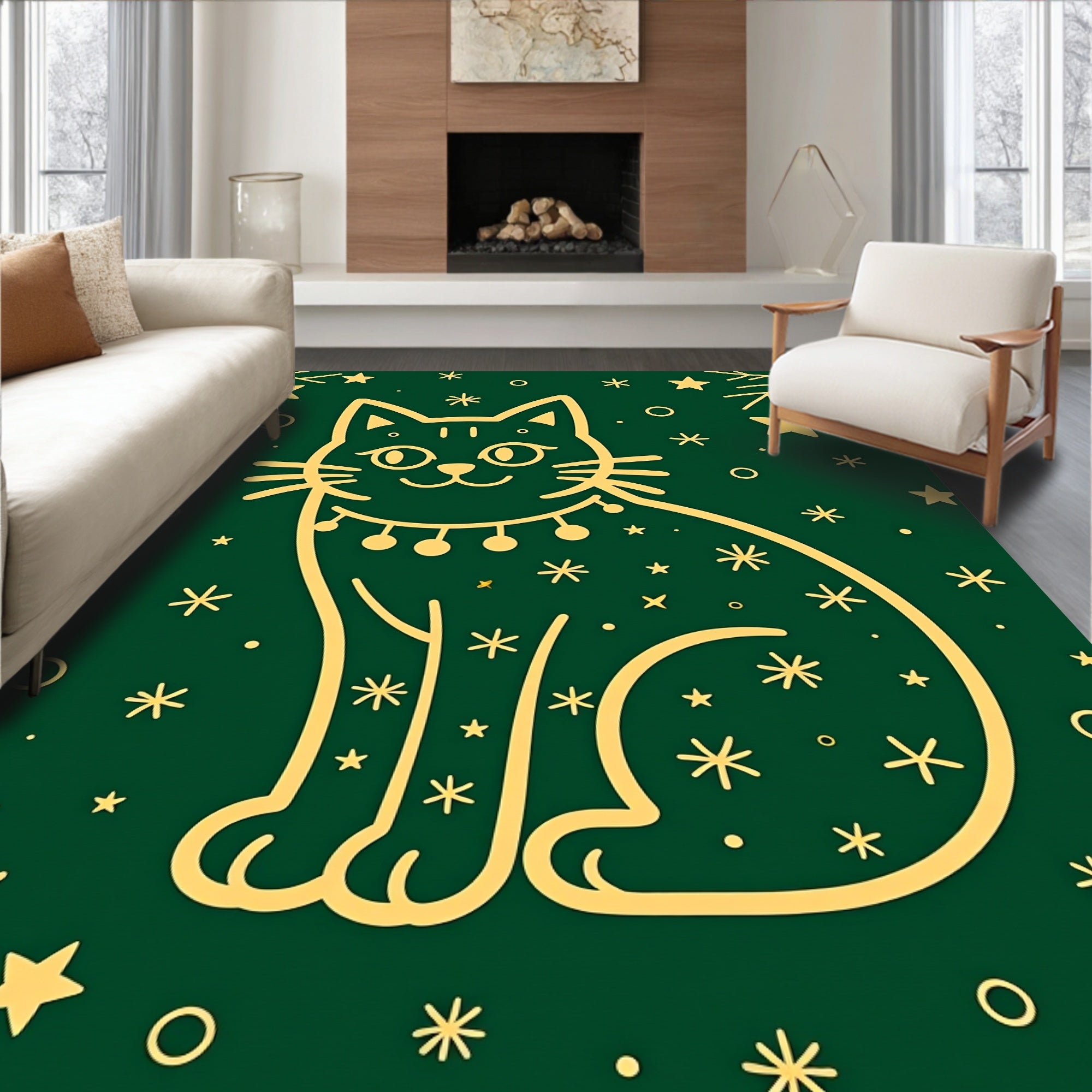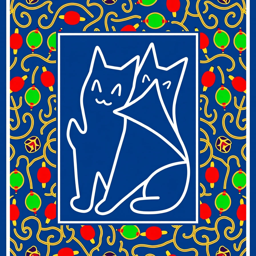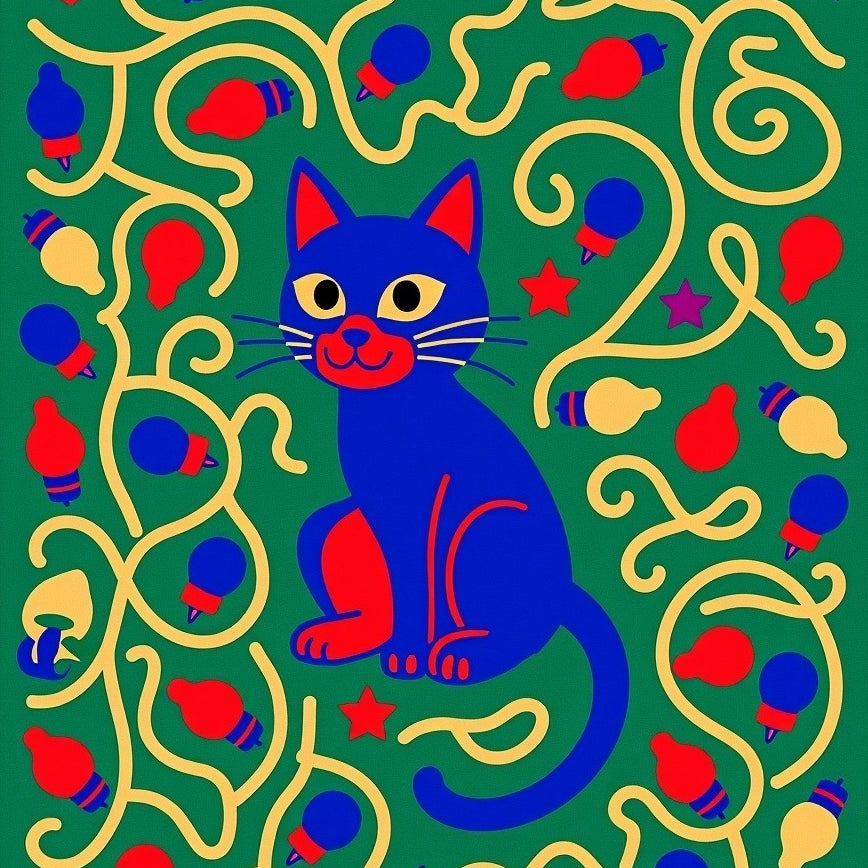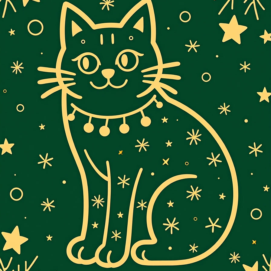 Novelty Holiday Cat with Playful Bulb Clusters and Swirling Festive Lines(Green)