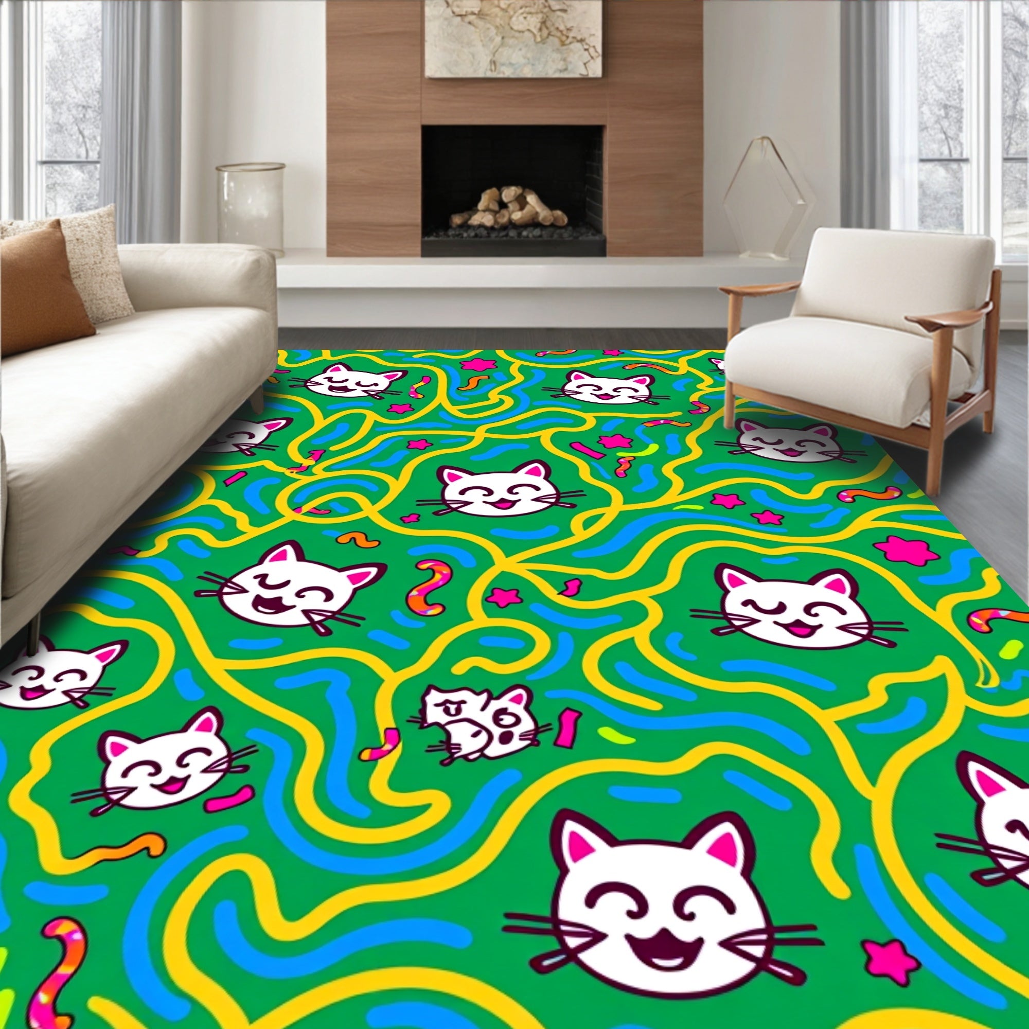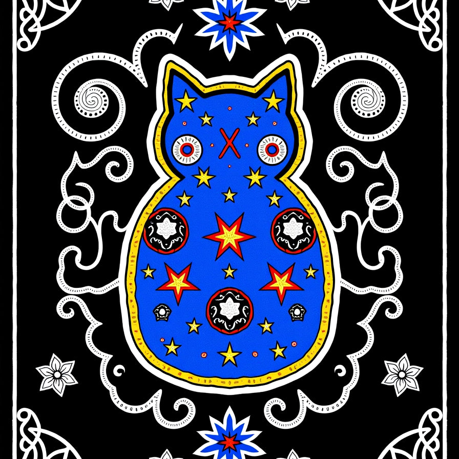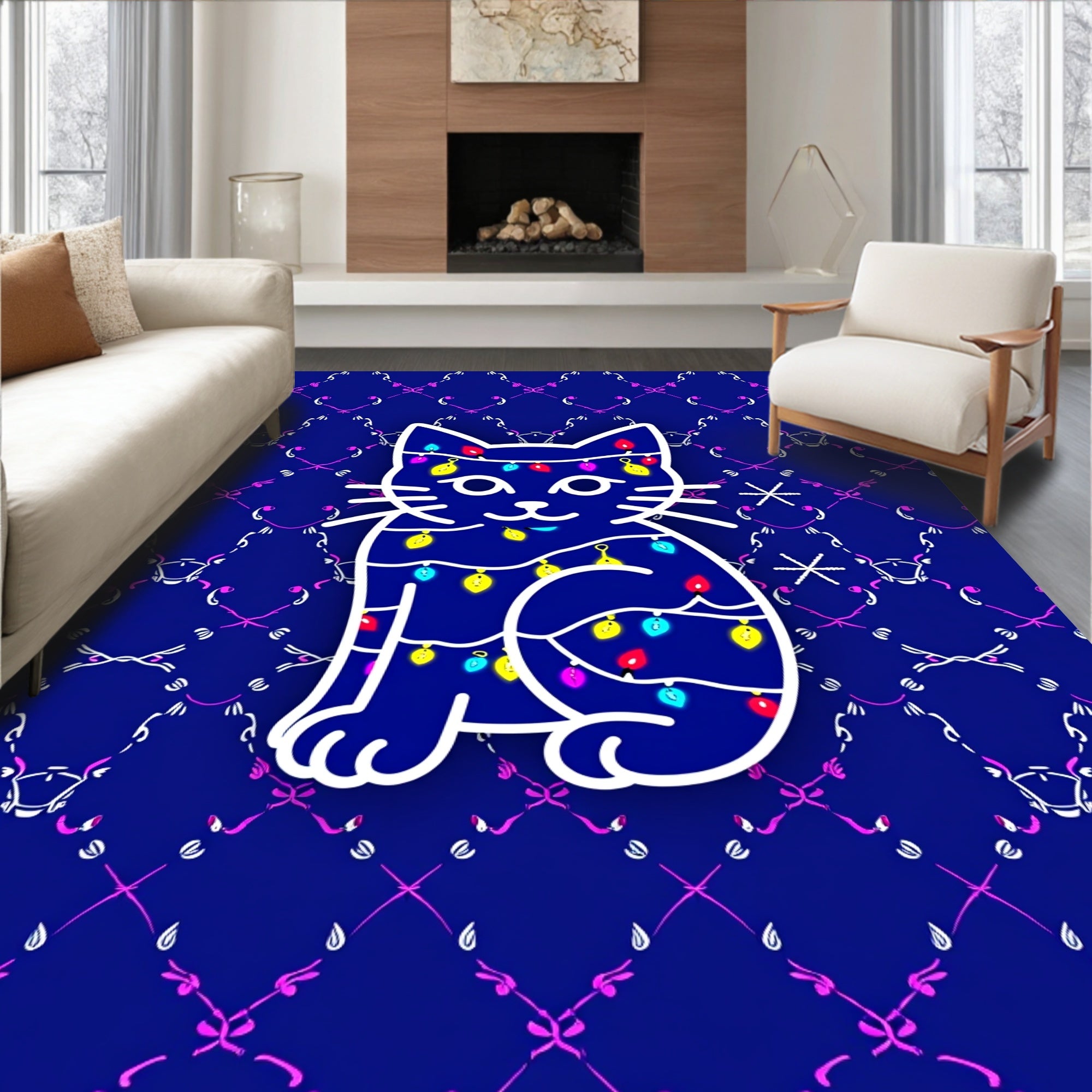 Comical Cat Portrait Seasonal Floor with Radiant Effects(Blue)