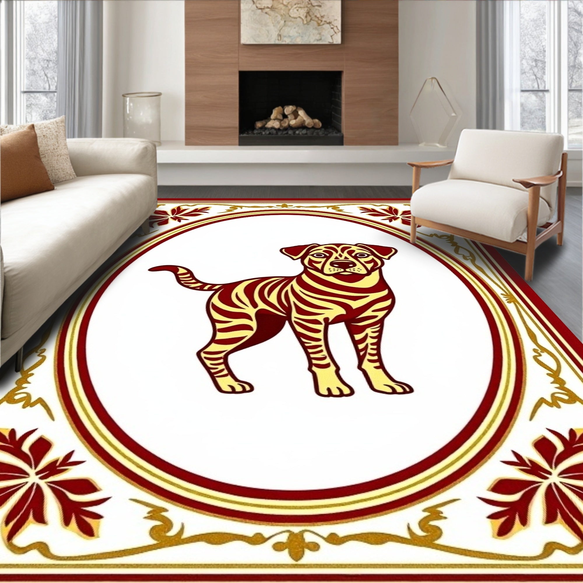 Quirky Holiday Floor Covering with Radiant Pet Motif and Sparkling Accents(Pink)