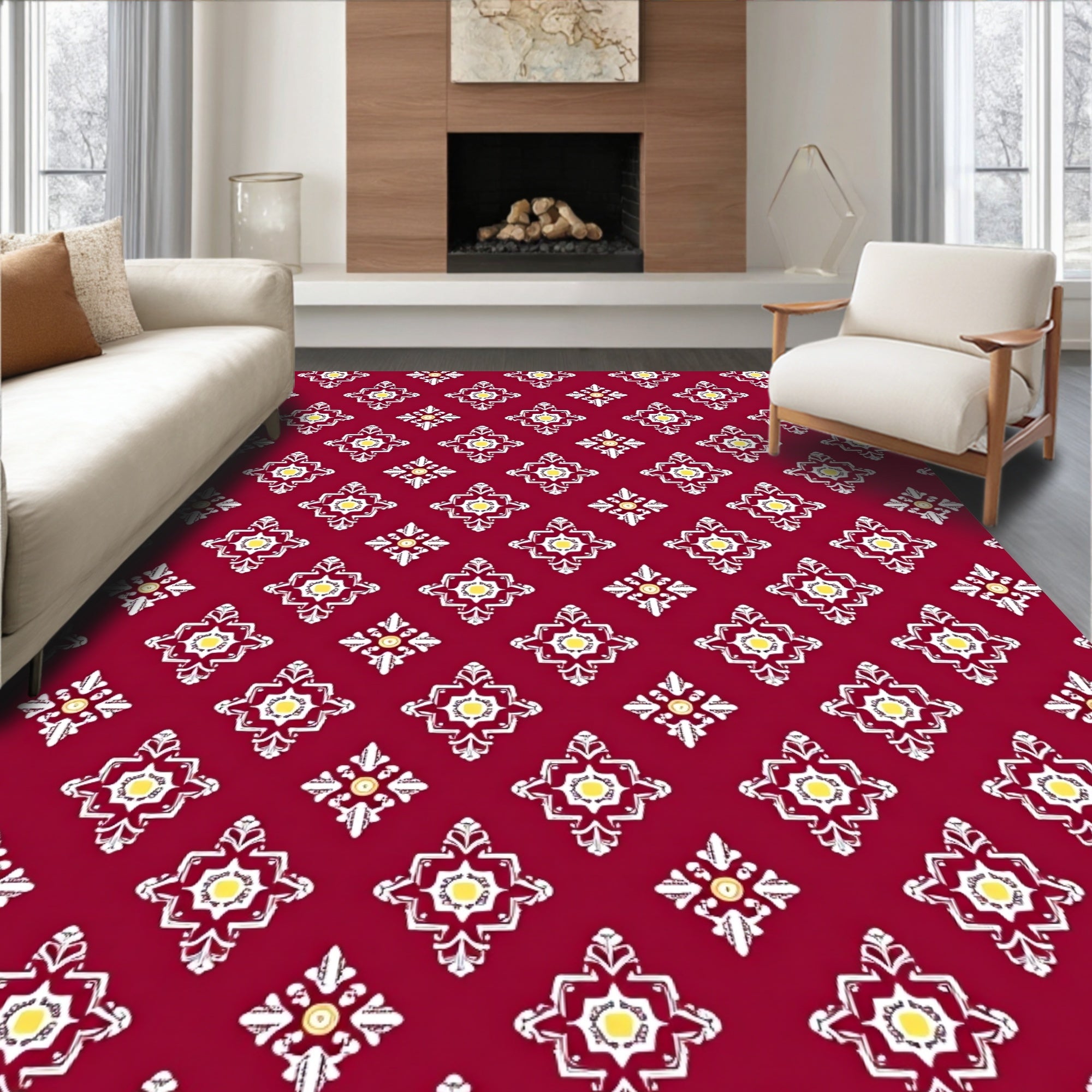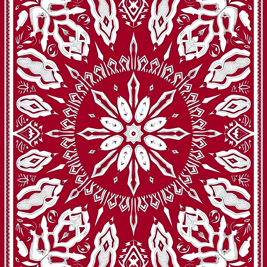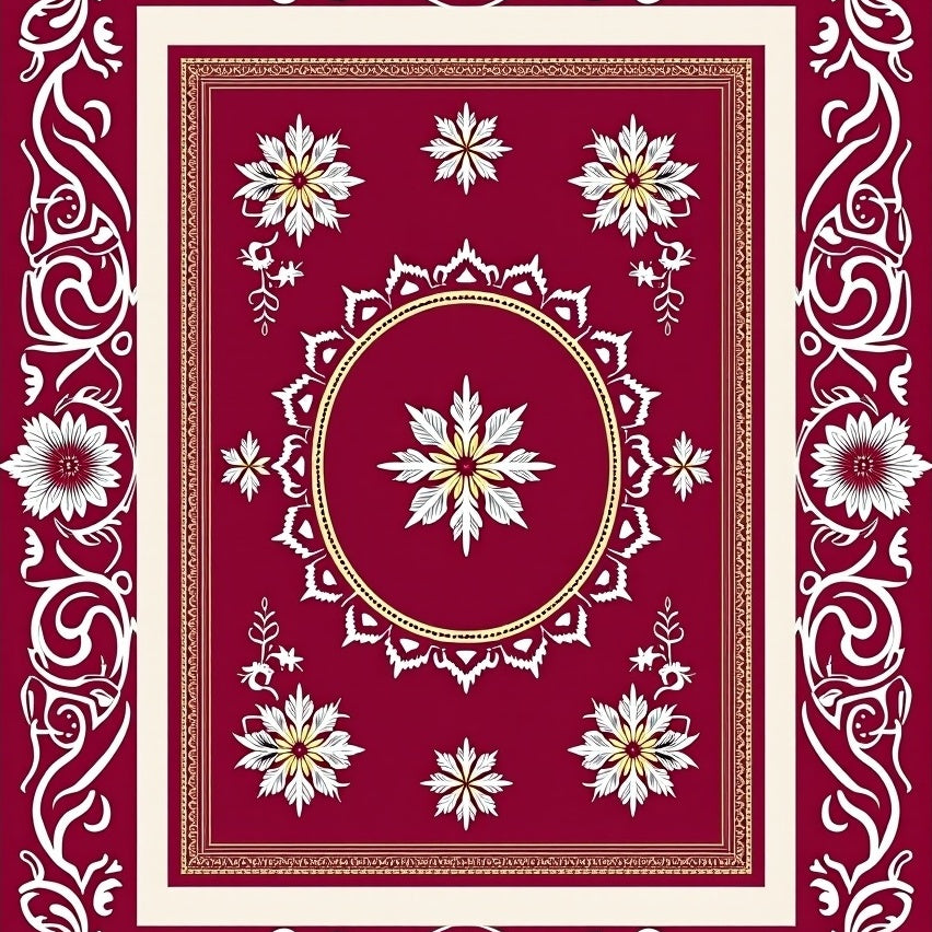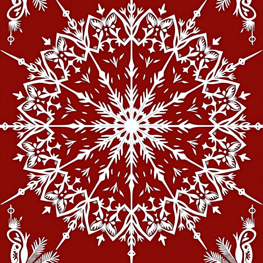 Snowflake Area with Intricate Winter Motifs(Red)