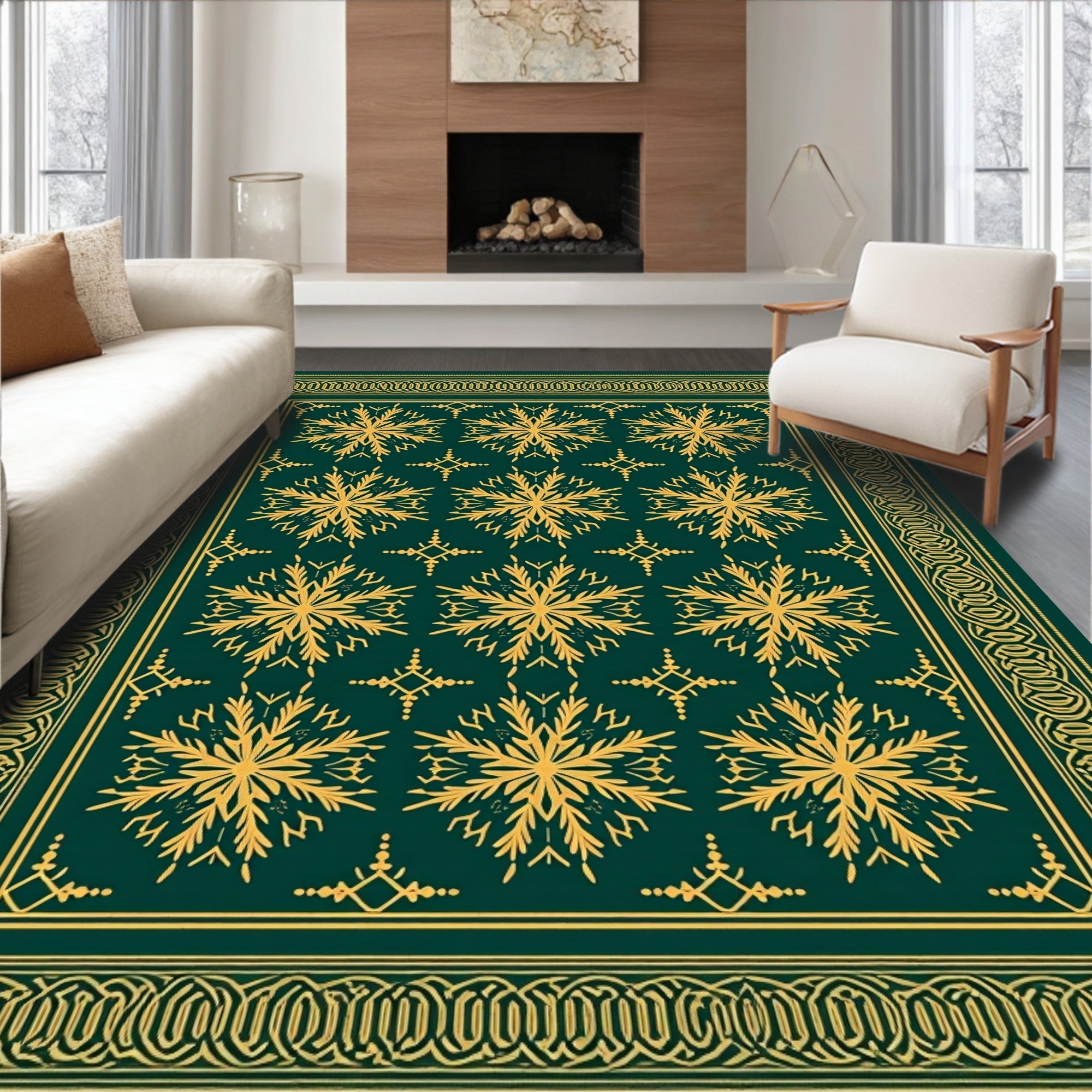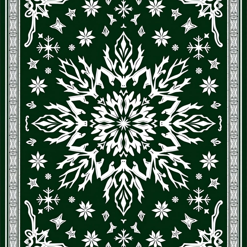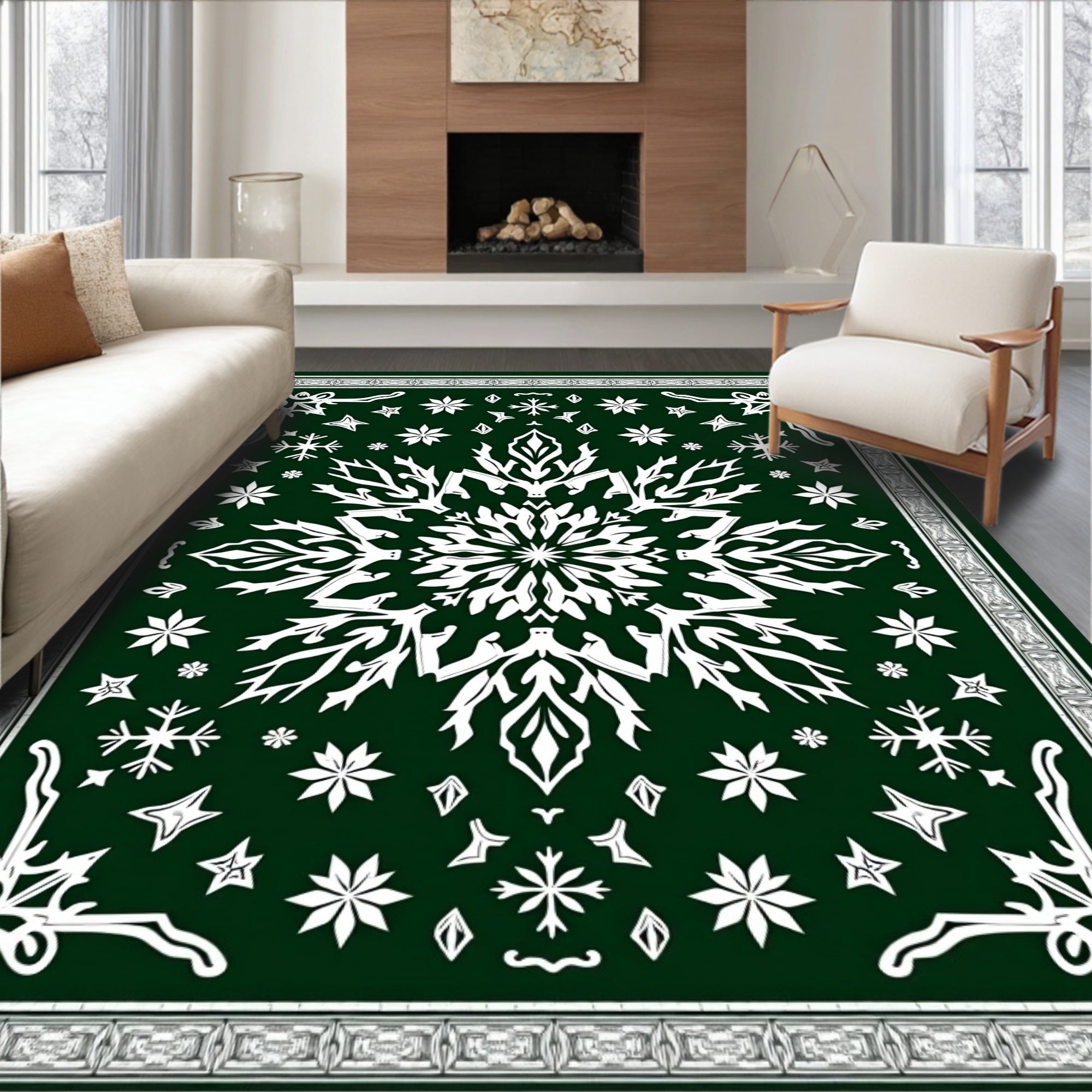 Snowflake Medallion Design Plush Floor Covering with Winter Crystalline(Green)