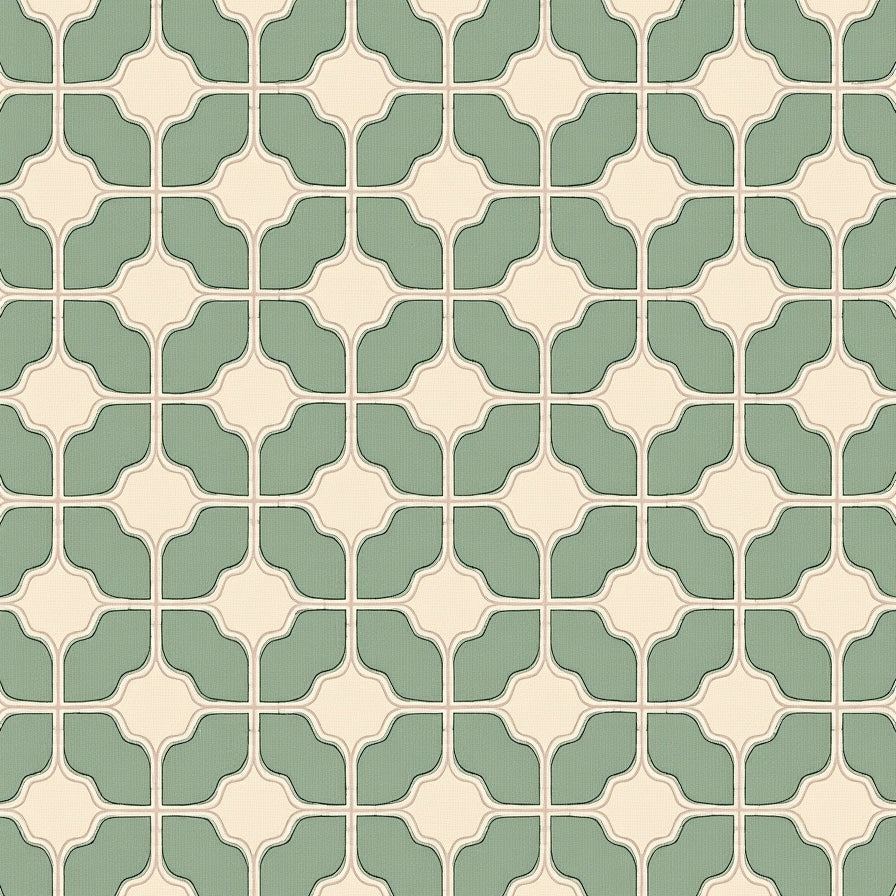 Tile Inspired Quatrefoil Interlocking Motifs(Green)