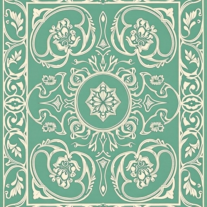 Artisan Scrollwork Interlocking Arabesque with Leaves(Green)