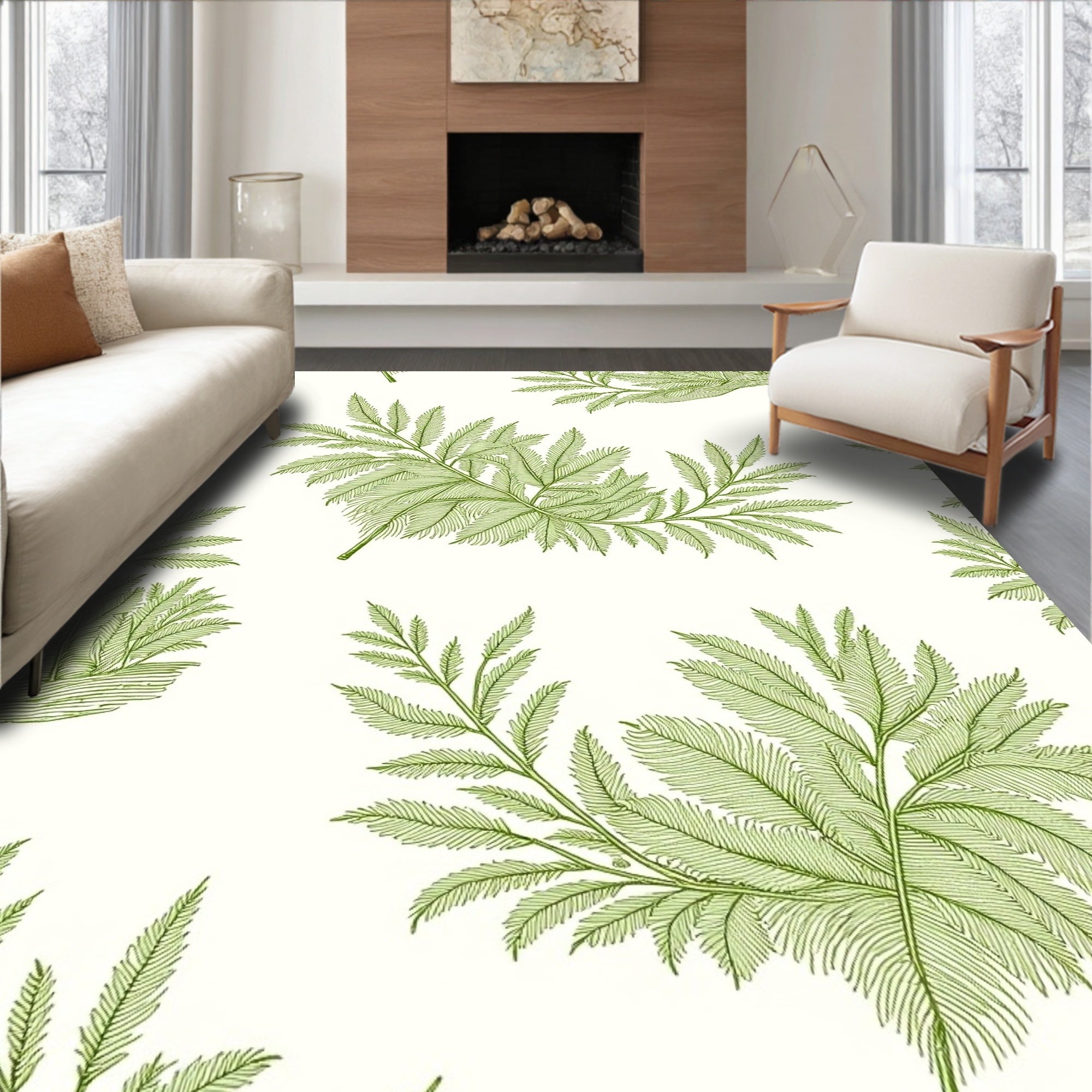 Nordic Mist Interlocking with Minimalist Ferns(Ivory)