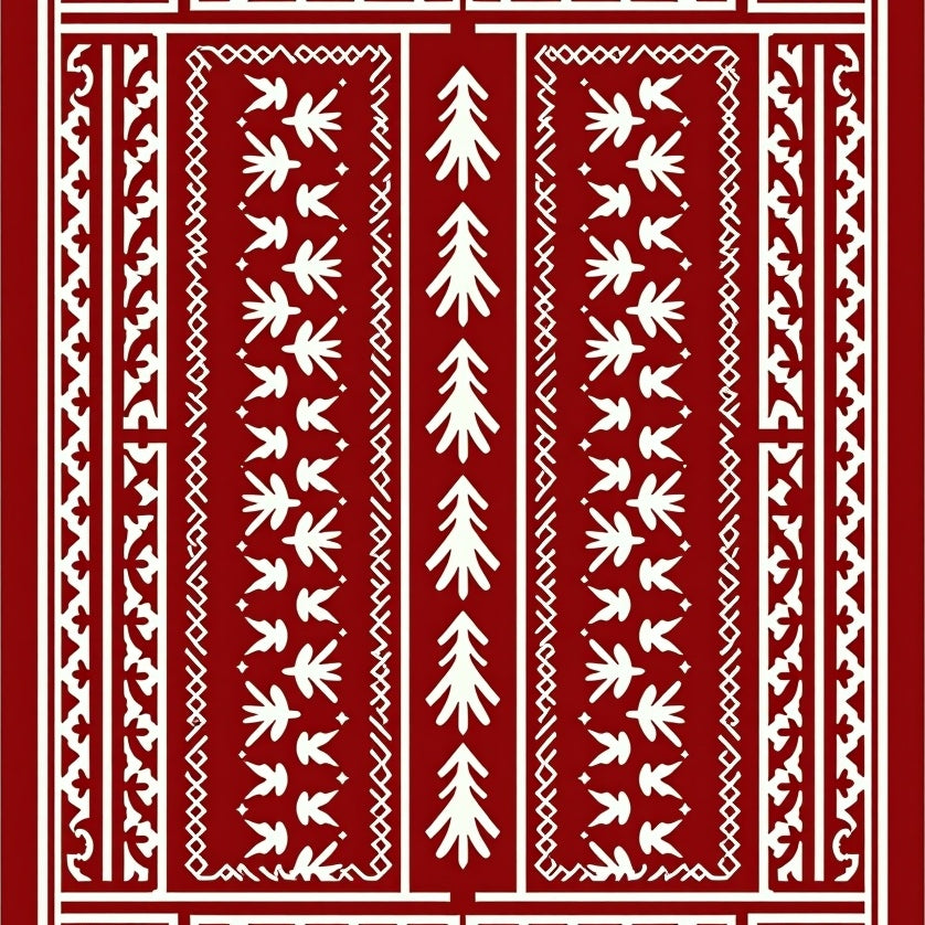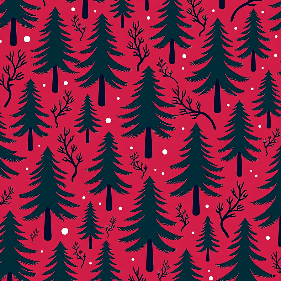 Vintage Nordic Inspired Design with Repeating Stylized Pine(Red)
