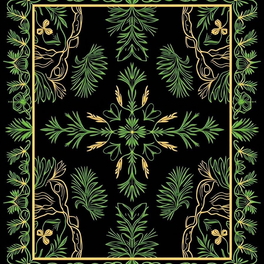 Nordic Pine Branch Interlocking with Festive Filigree Motifs(Black)