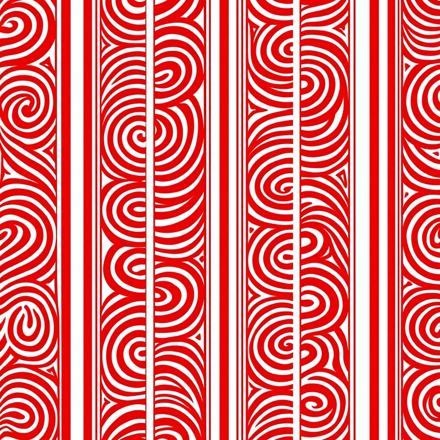 Whimsical Cane Swirl Featuring Playful Stripe Arrangements(Red)