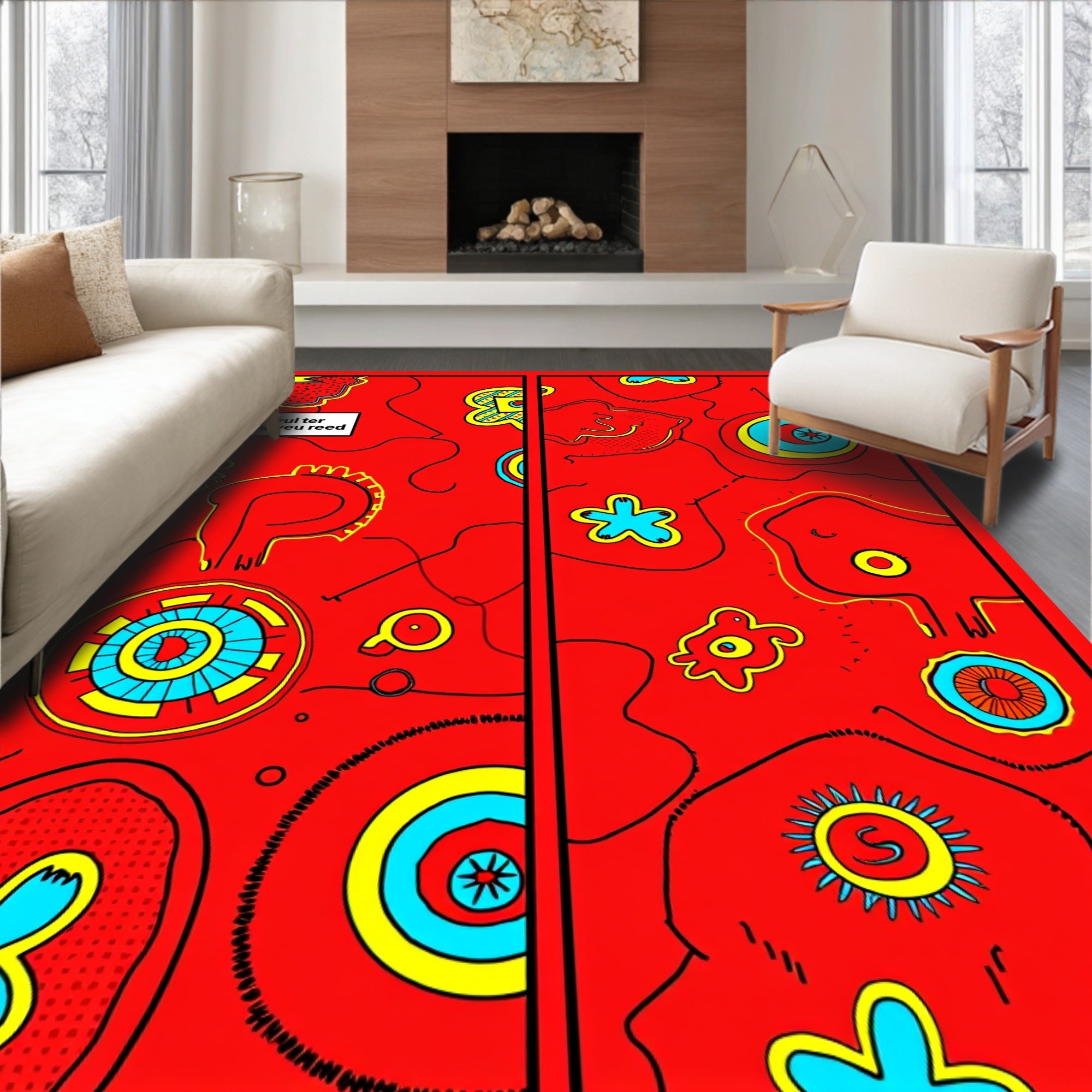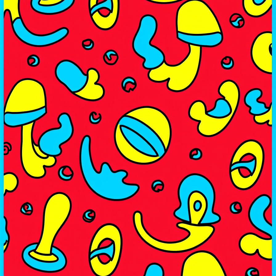 Comic Inspired Whimsical Doodle Design with Playful Abstract Shapes(Red)