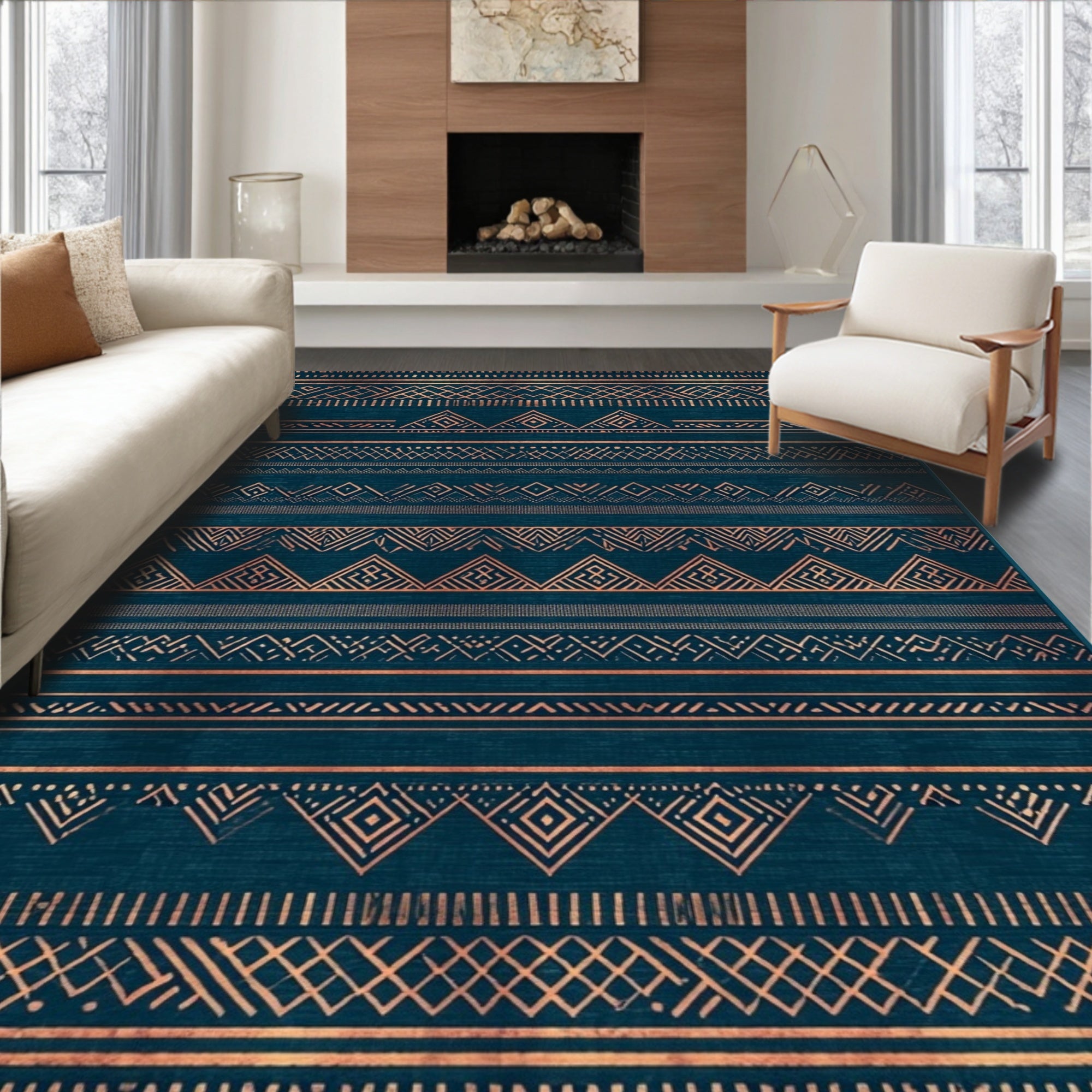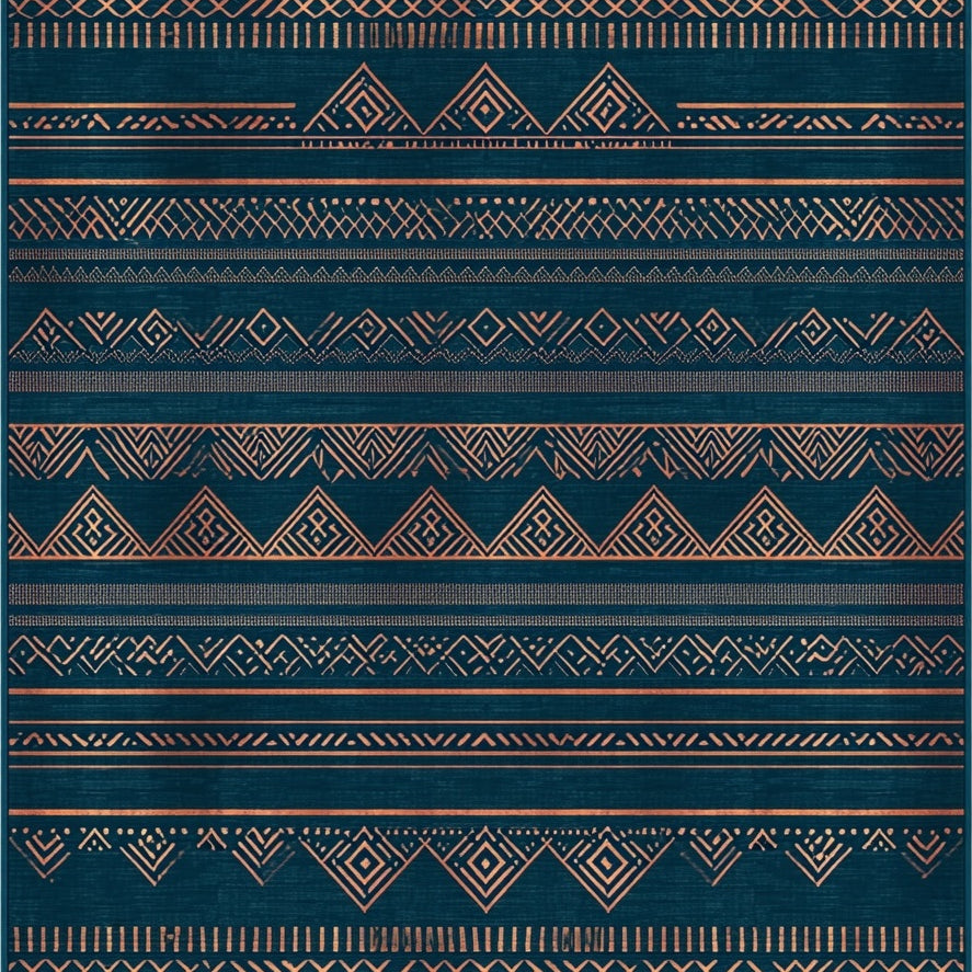 Elegant Funky Oriental Design Non Shedding Low Pile(Blue)
