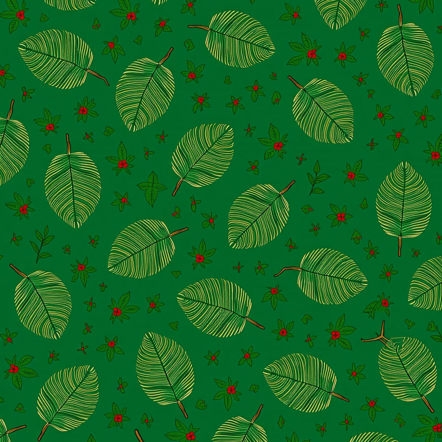 Holiday Pine and Berry with Interlocking Swirls(Red)