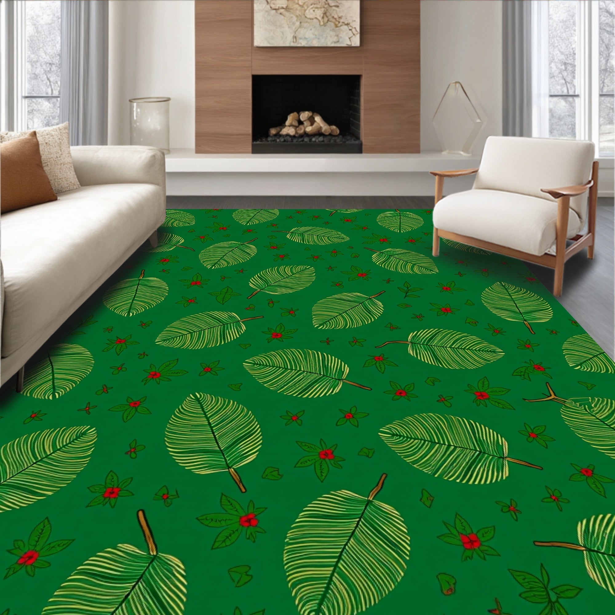 Festive Holly Leaf Shag with Interlocking Vine Motifs(Black)