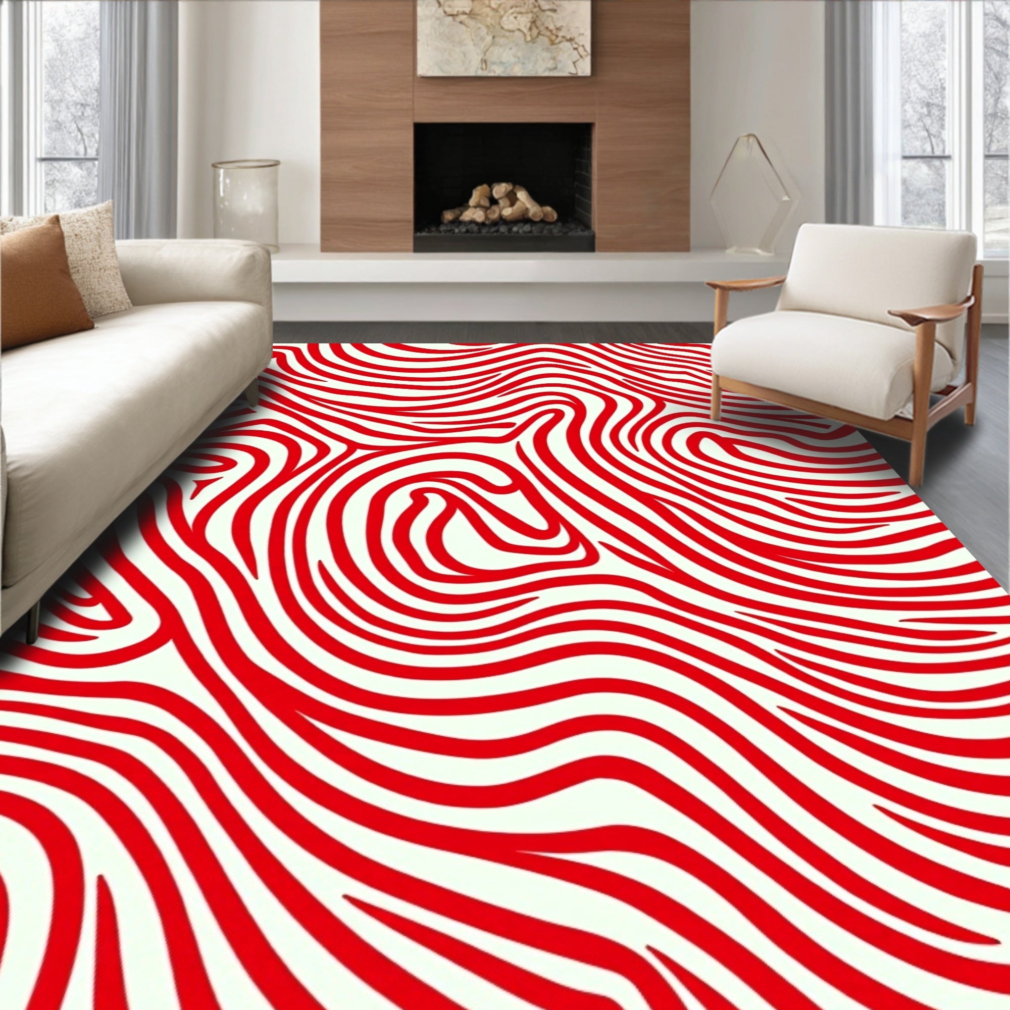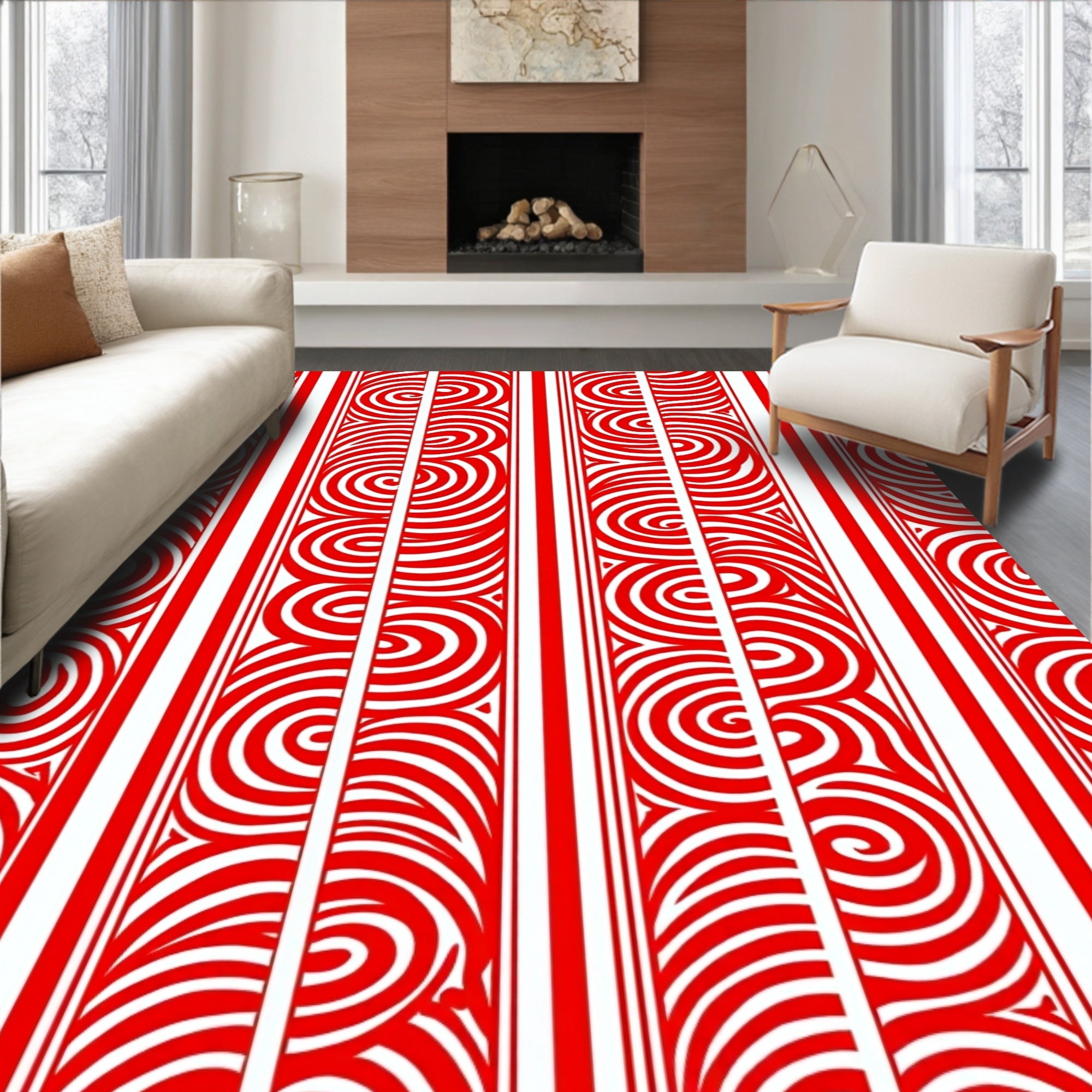 Cane Stripe Swirl Motif Decorative Floor Covering(Red)