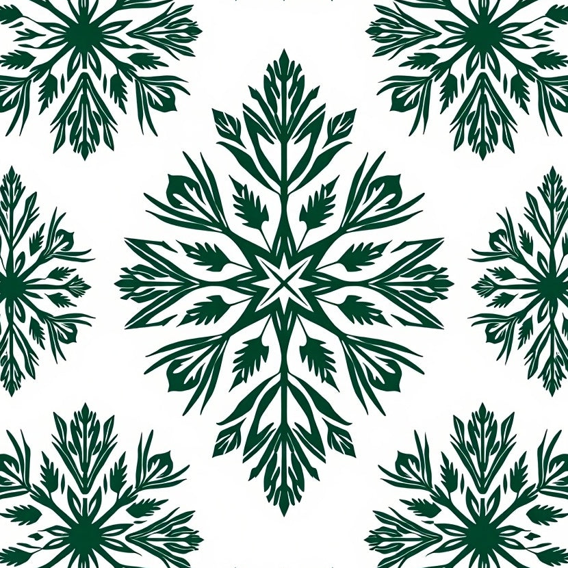 Winter Solstice Starburst with Interlocking Snowflake Motifs(Green)
