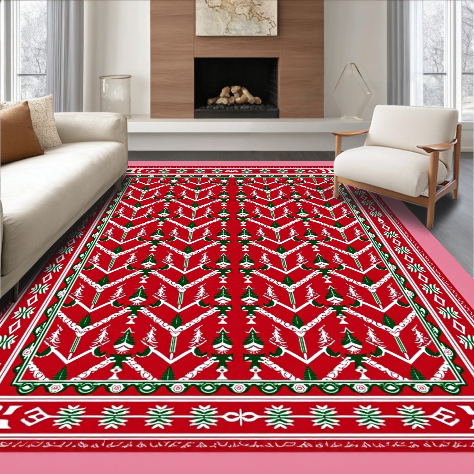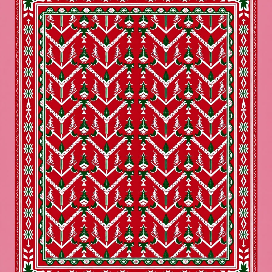 Scandinavian Fir Tree Interlocking Chevron Holiday Design(Red)
