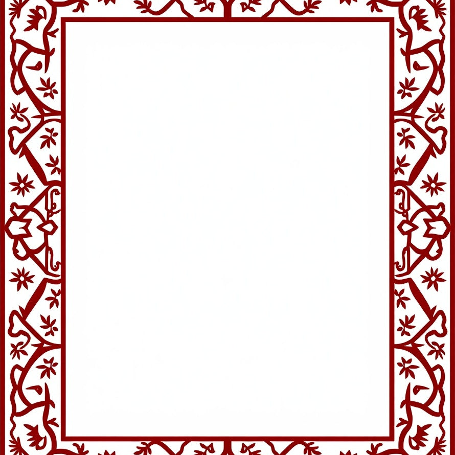 Cardinal Botanical Print with Vine Scroll Accents(Red)