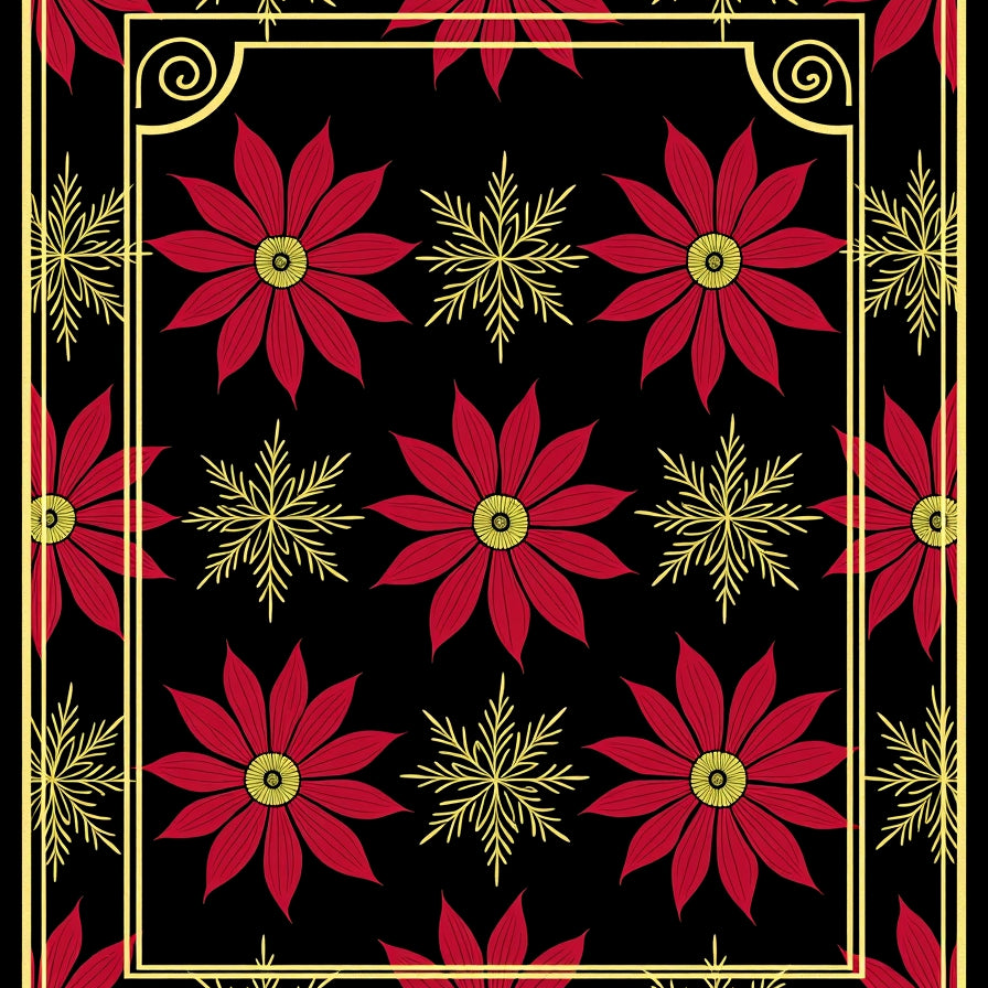Poinsettia Bloom Damask with Traditional Holiday Framework(Red)