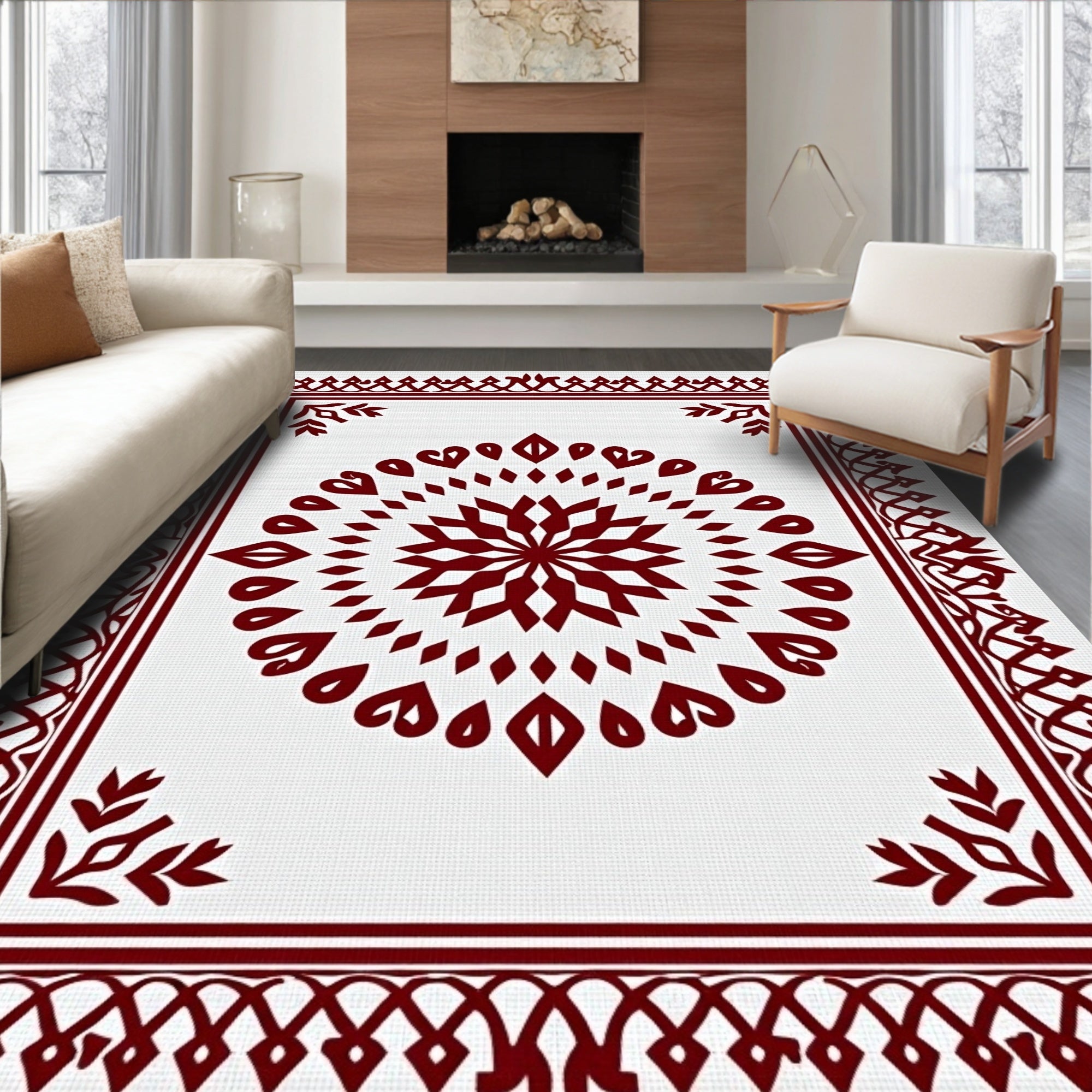 Snowflake Decorative Area with Intricate Festive Design(Burgundy)