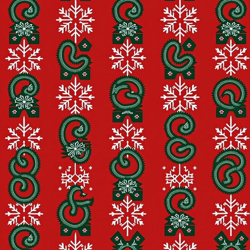 Rustic Holiday Check with Interwoven Wreaths and Stylized Snow Motifs(Red)