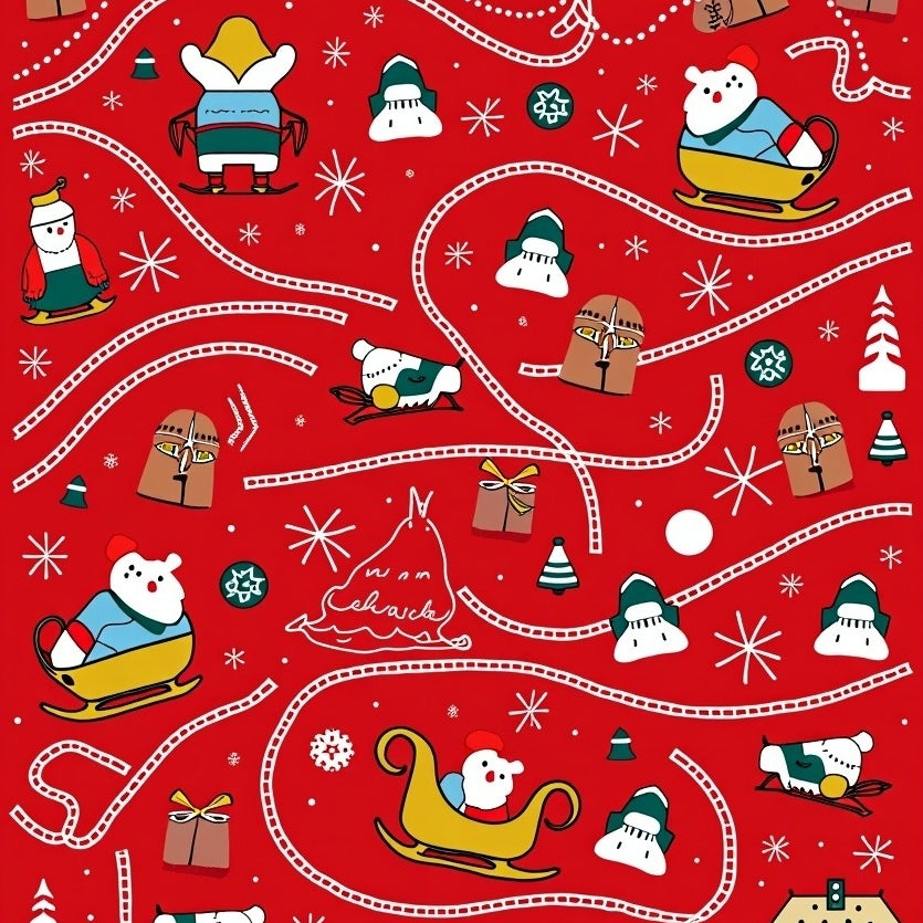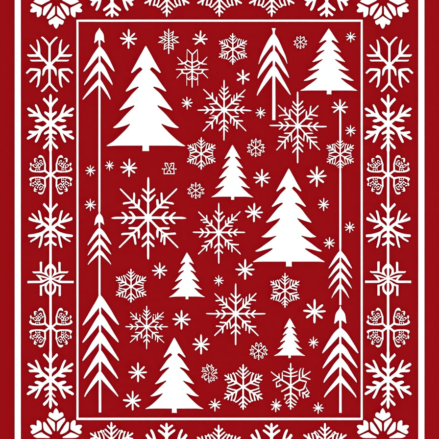 Festive Santa Sleigh and Pine Tree Motif with Snowflake Accents(Red)