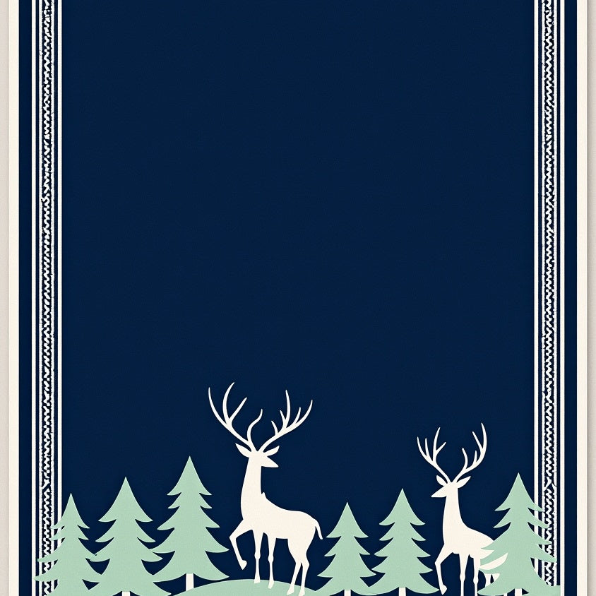 Nordic Caribou Doormat with Evergreen Tree Border(Blue)