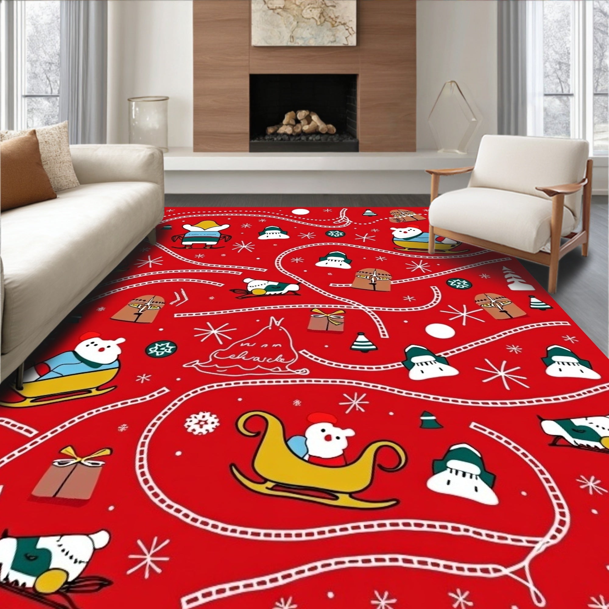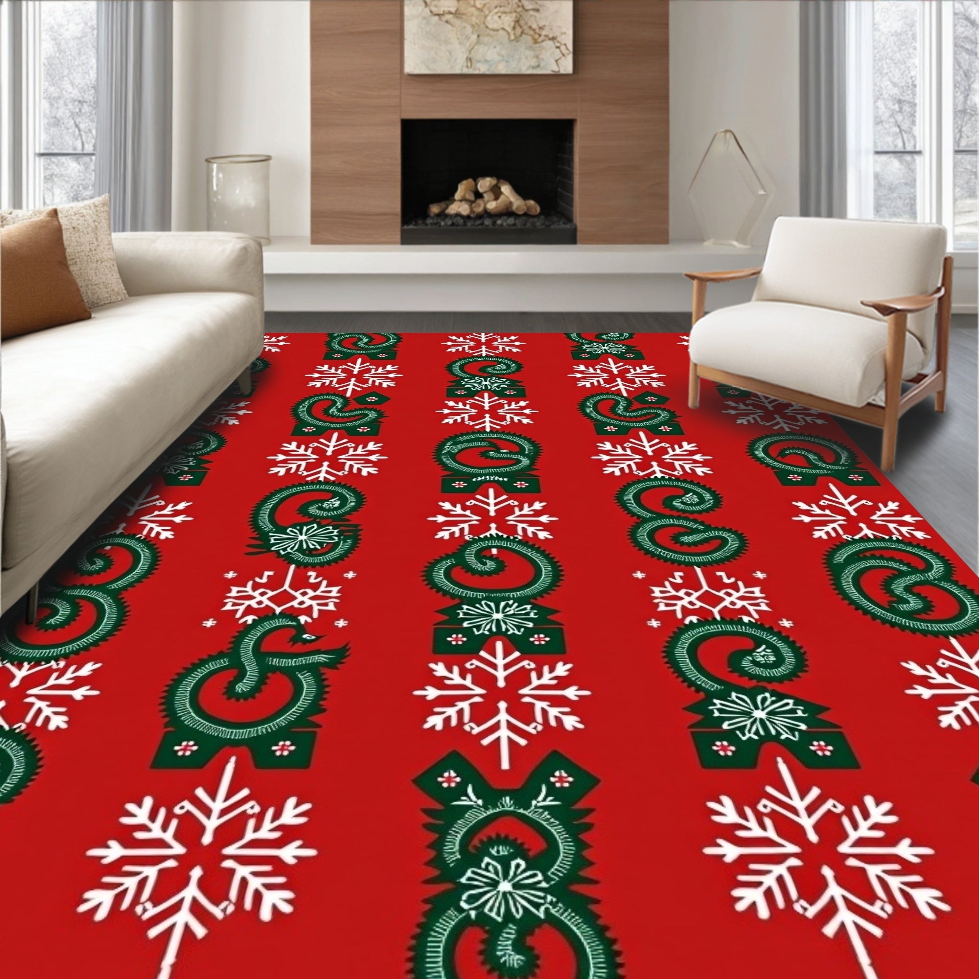 Festive Reindeer Area with Snowflake Motifs(Red)