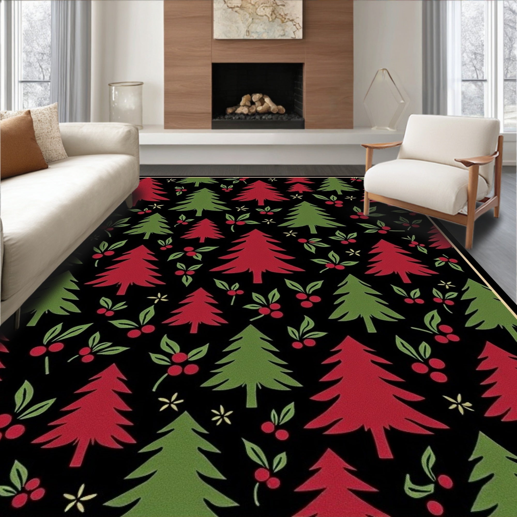 Vintage Pine Tree Forest Scene with Holly Berry Accents Christmas Motif(Black)