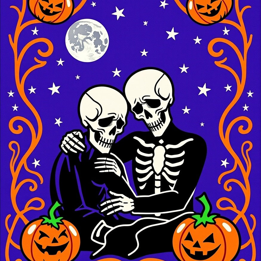 Gothic Skeleton Couple Dancing Eternal Romance Area(Black)