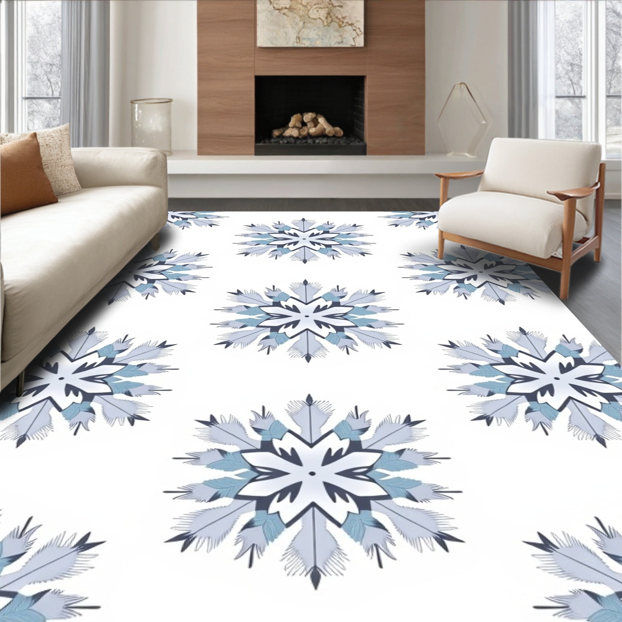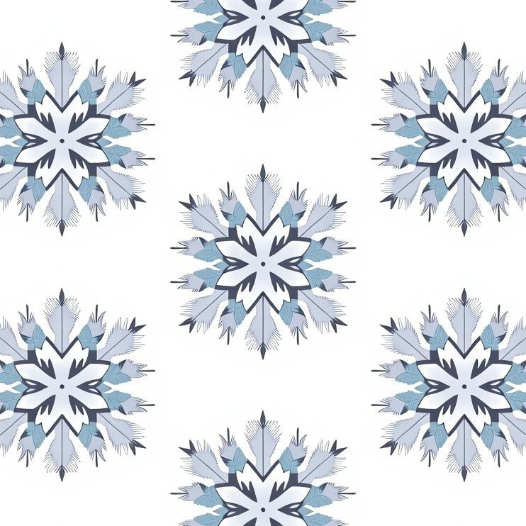 Nordic Frosted Snowflake Mosaic with Interlocking Winter Motifs(Blue)