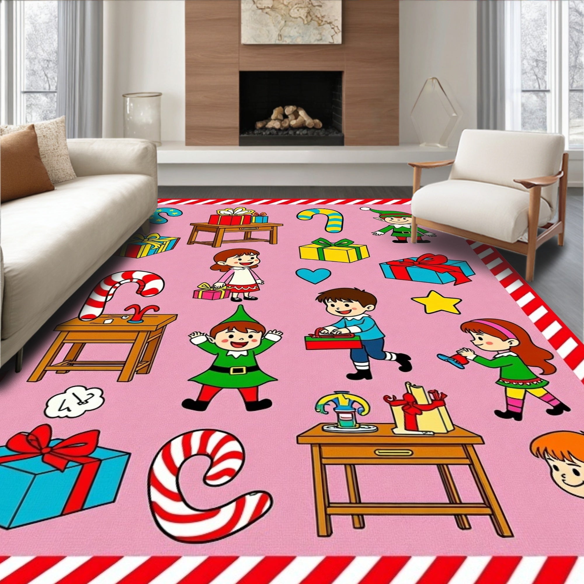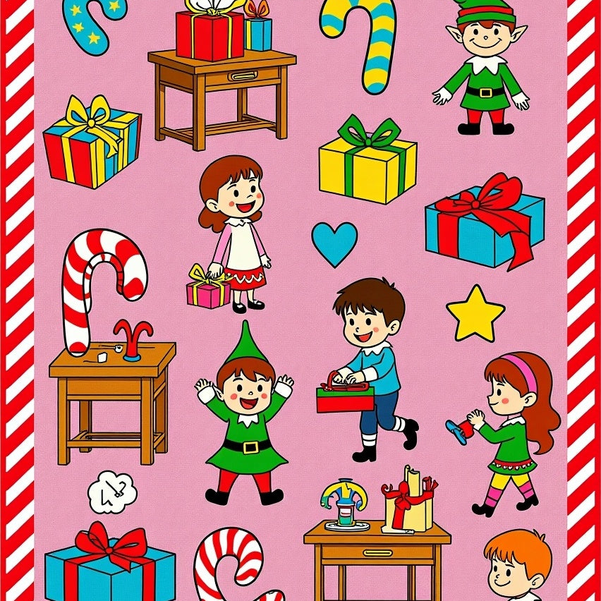Whimsical Workshop Toy Factory with Cane Stripe Borders(Pink)