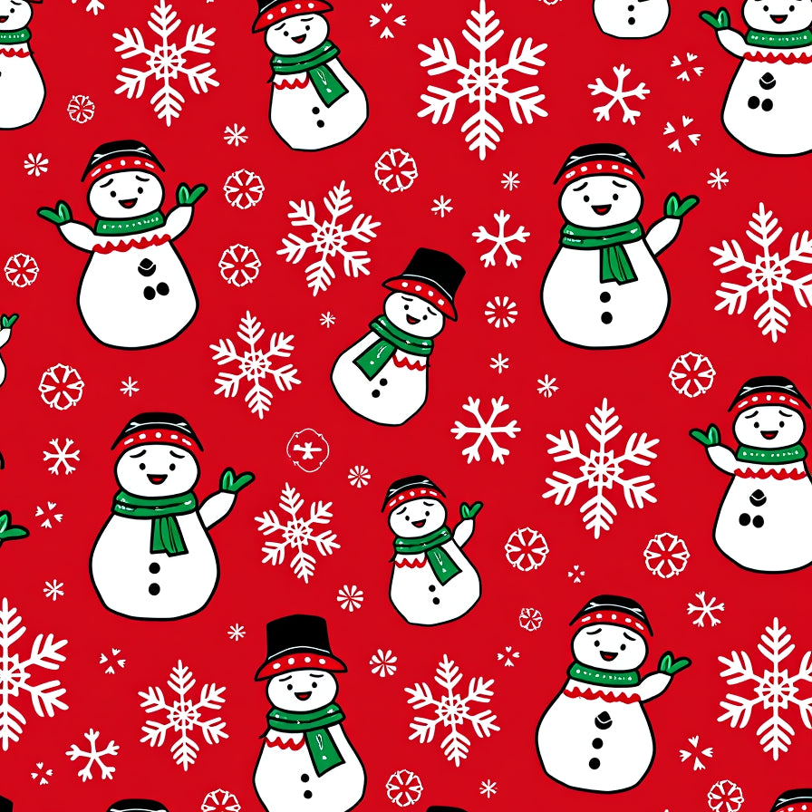 Festive Snowflake Parade with Dancing Snowmen and Starry Borders(Red)