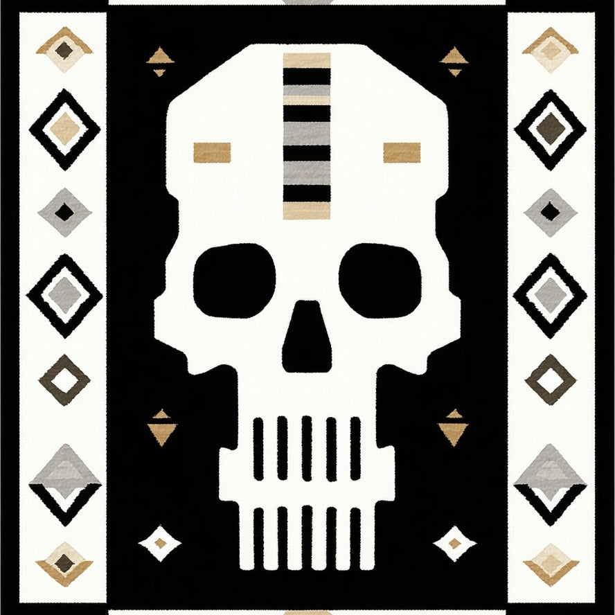 Abstract Geometric Skull Motif with Symmetrical Tribal Lines(Black)