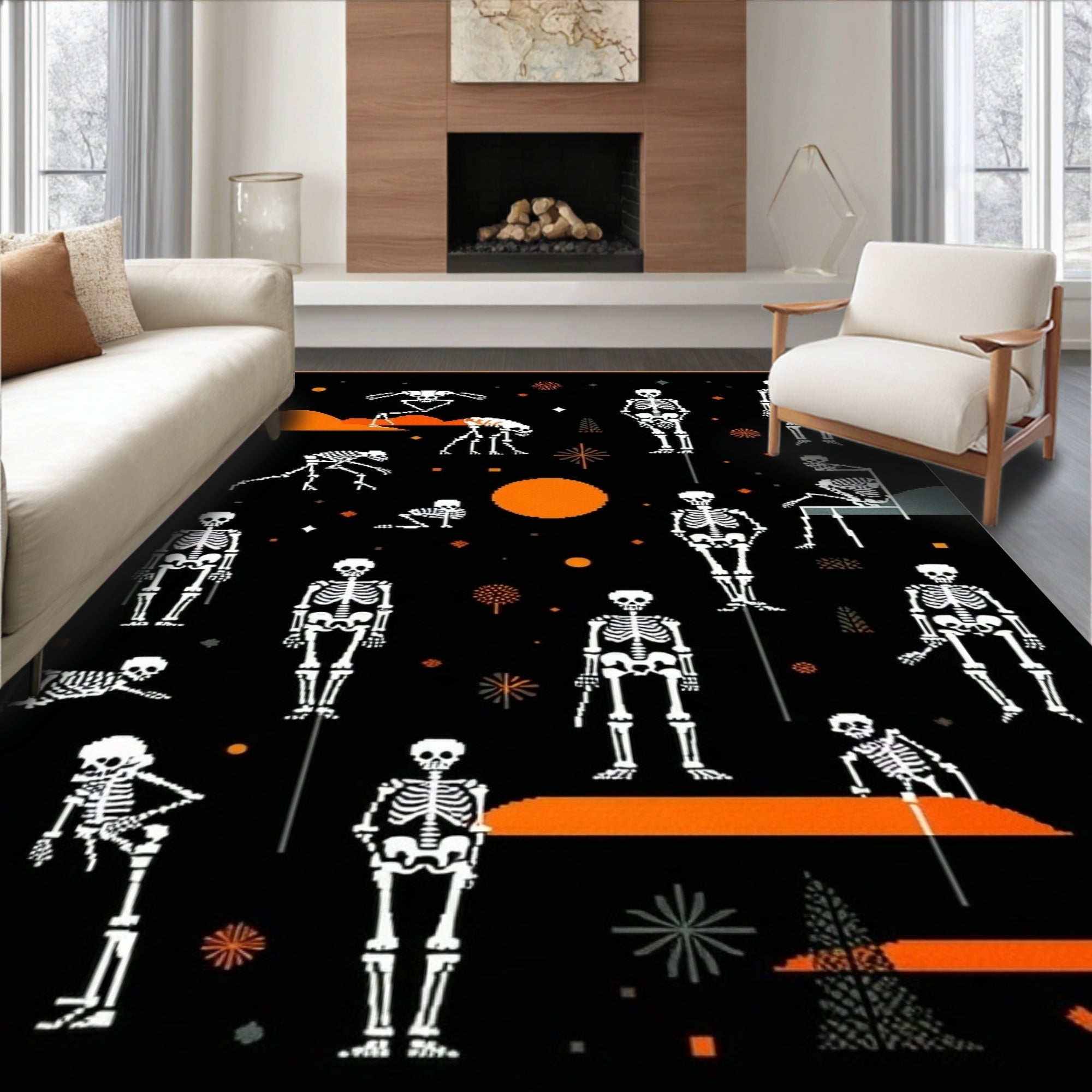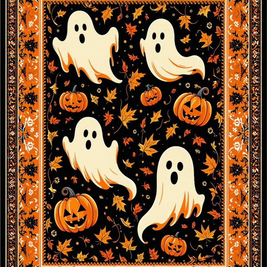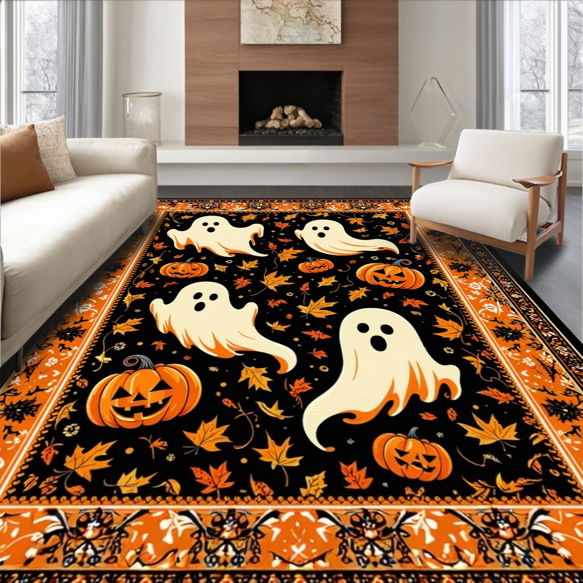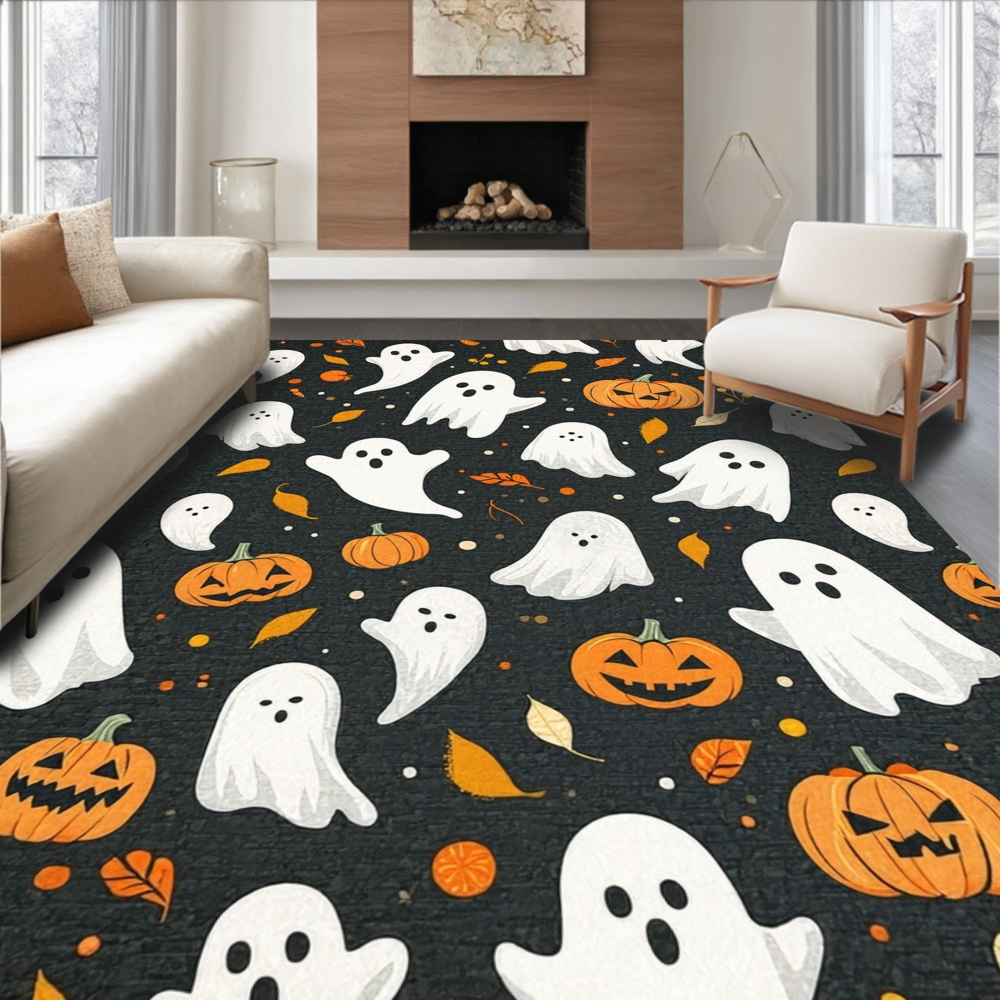Spooky Ghost & Pumpkin Patch Area Rug for Festive Fall Decor(Black)