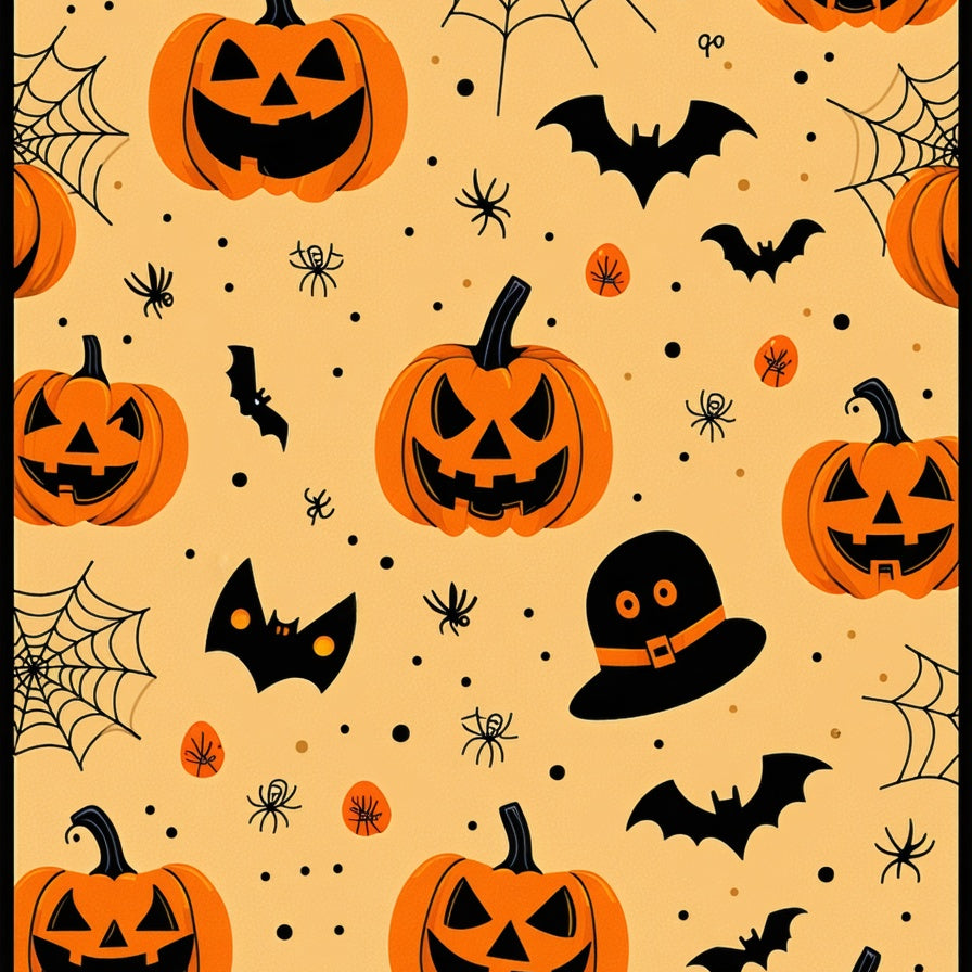 Abstract Spider Web and Pumpkin Motif Round with Gothic Charm(Orange)