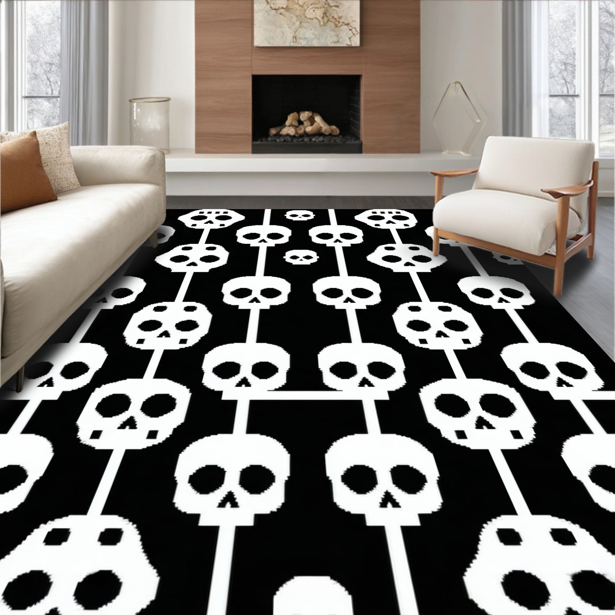 Spooky Heart Eyed Skull Tufted Rug Halloween Gothic Aesthetic(Black)