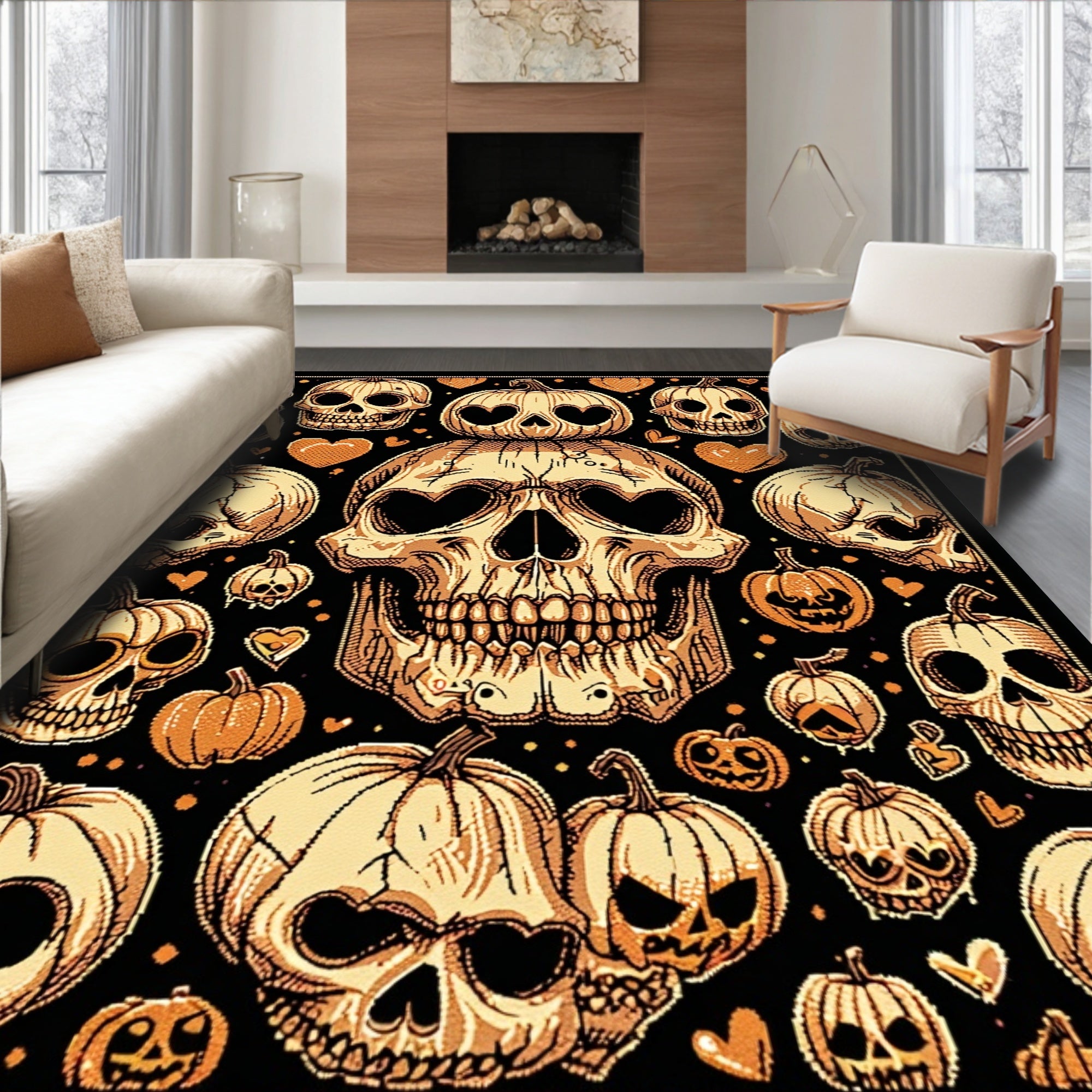Gothic Pumpkin & Spiderweb Area Rug Non Slip Floor Mat for Seasonal Decor(Black)
