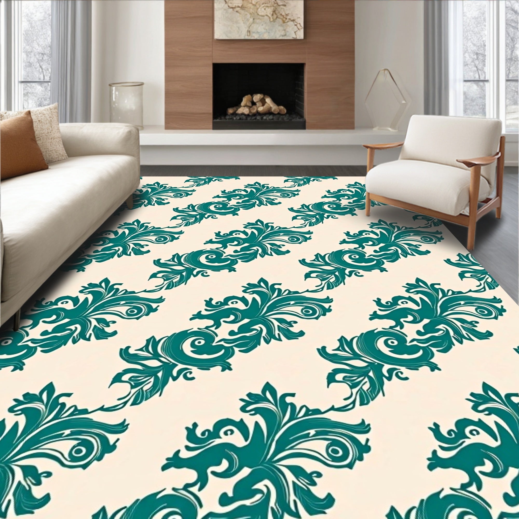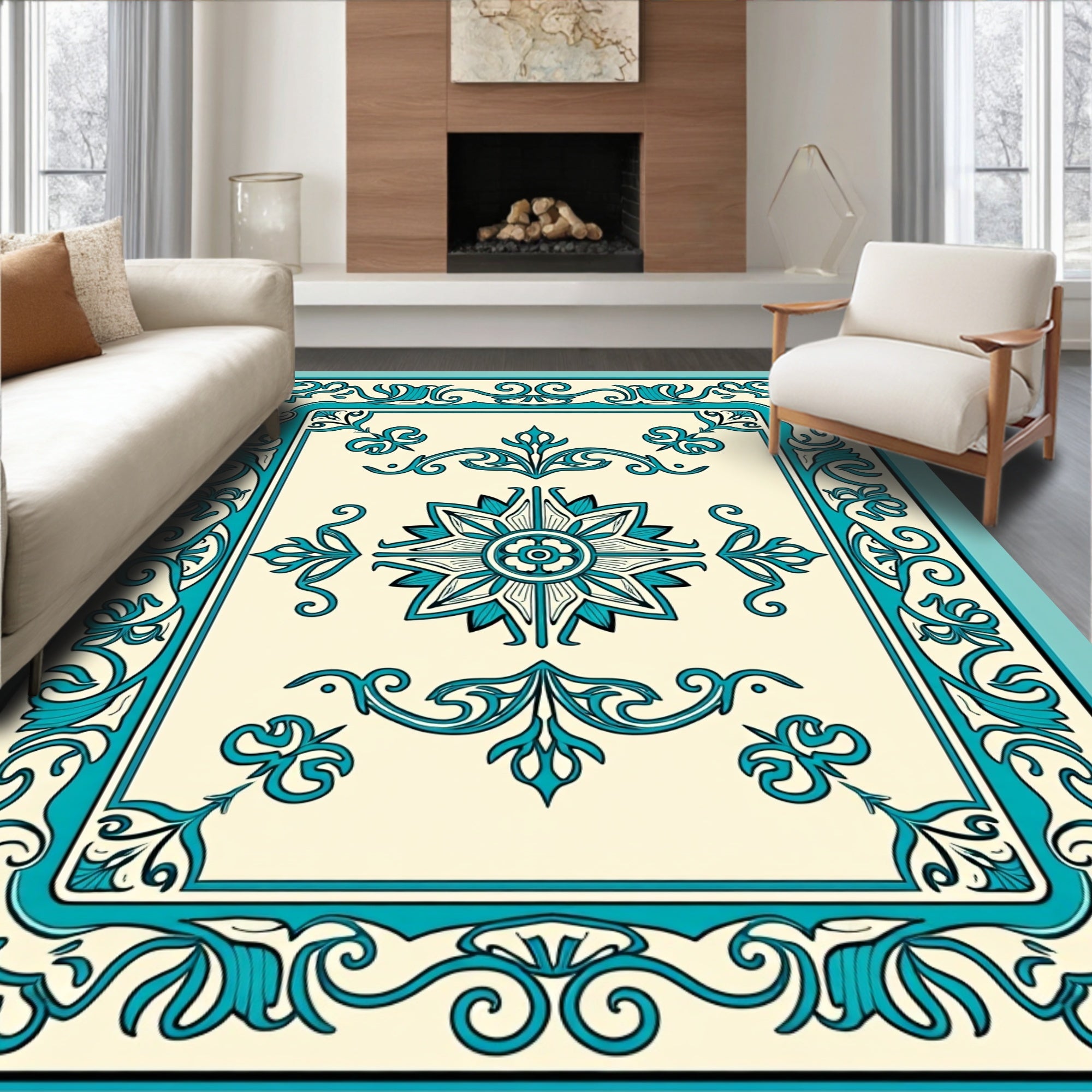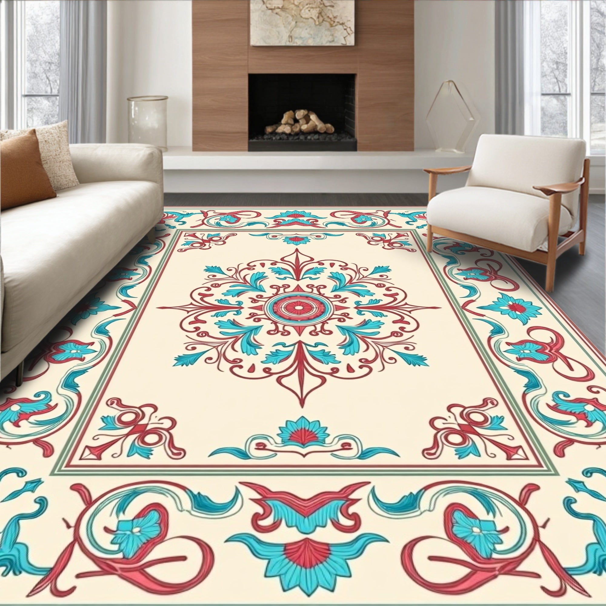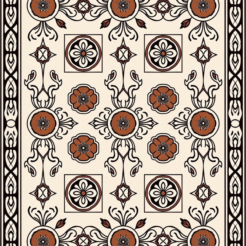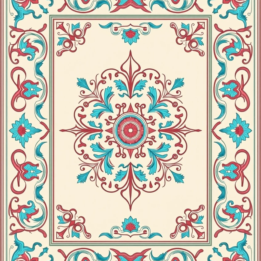 Elegant Floral Bordered Symmetrical Medallion Vintage Decorative (Ivory)