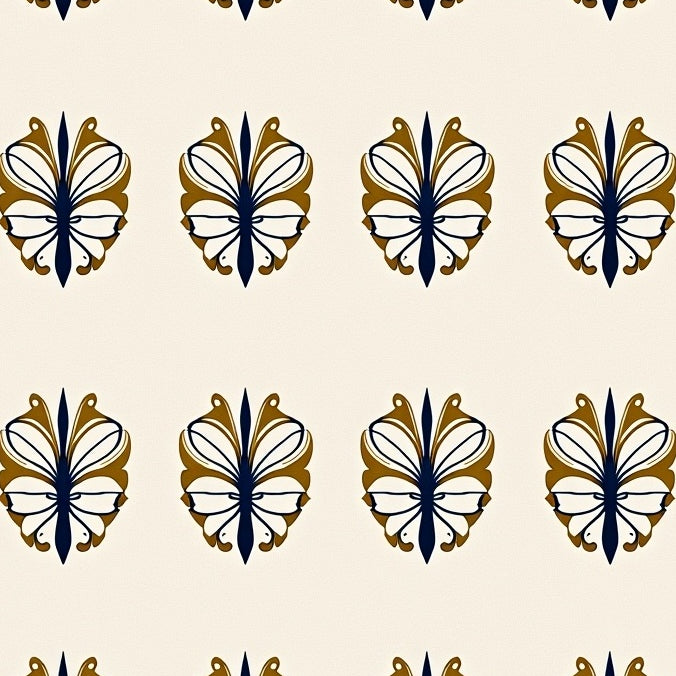 Art Nouveau Swirling Floral with Stylized Leaf Accents (Ivory)