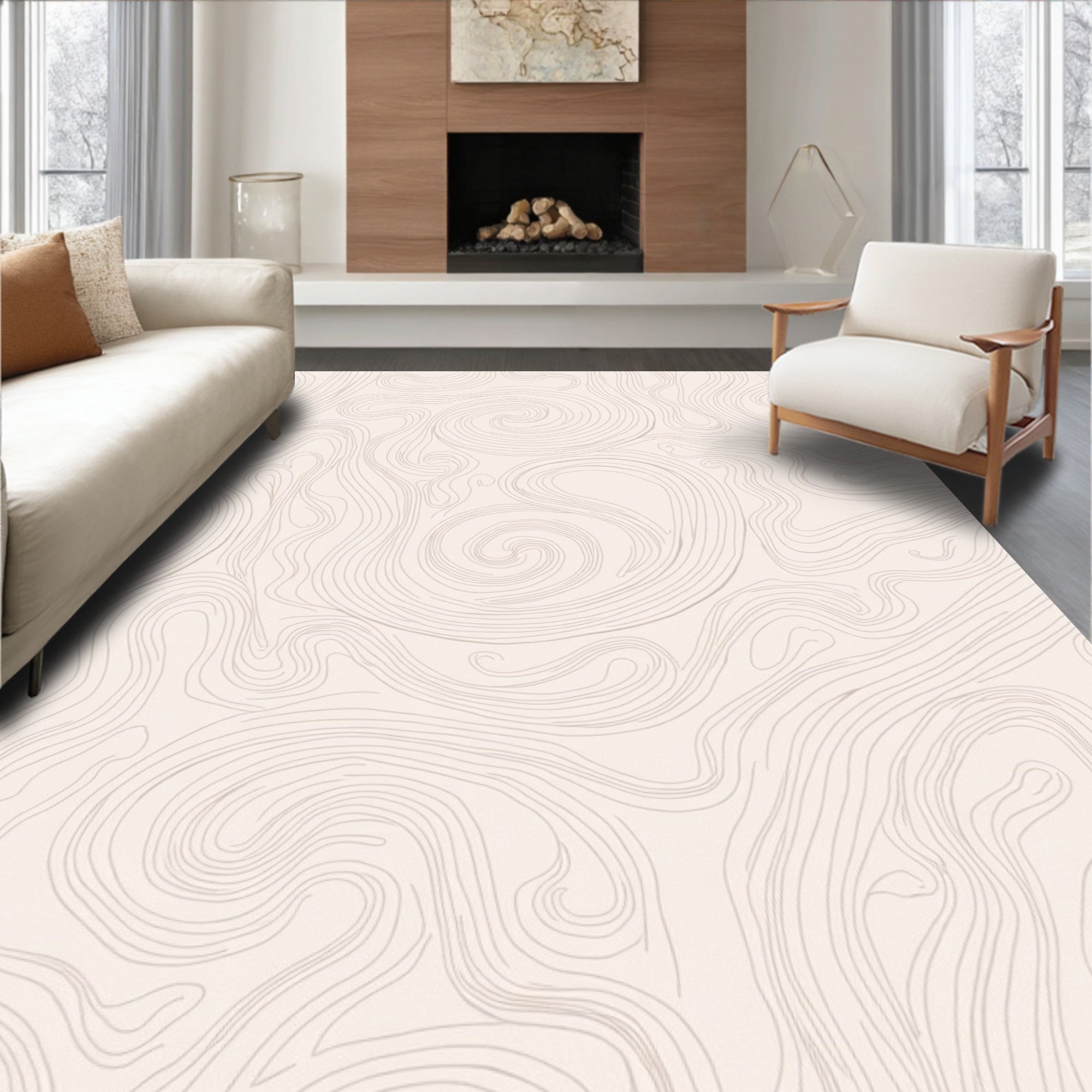 Elegant Swirl Abstract Decorative Flat Stylish Accent (Ivory)