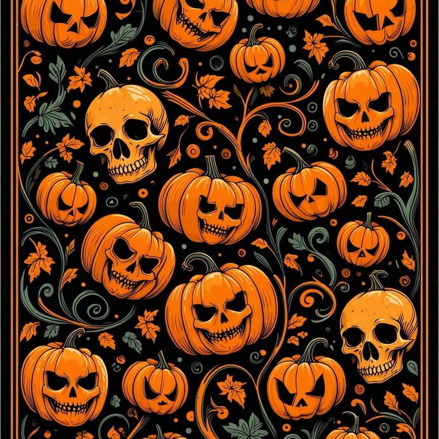 Spooky Pumpkin Patch with Gothic Skull Accents and Halloween Vibes(Orange)