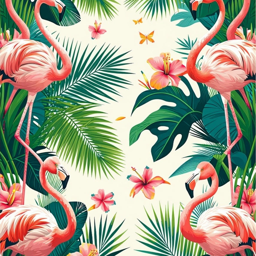 Tropical Flamingo Green Palm Leaves with Vibrant Jungle Flora Motif(Pink)