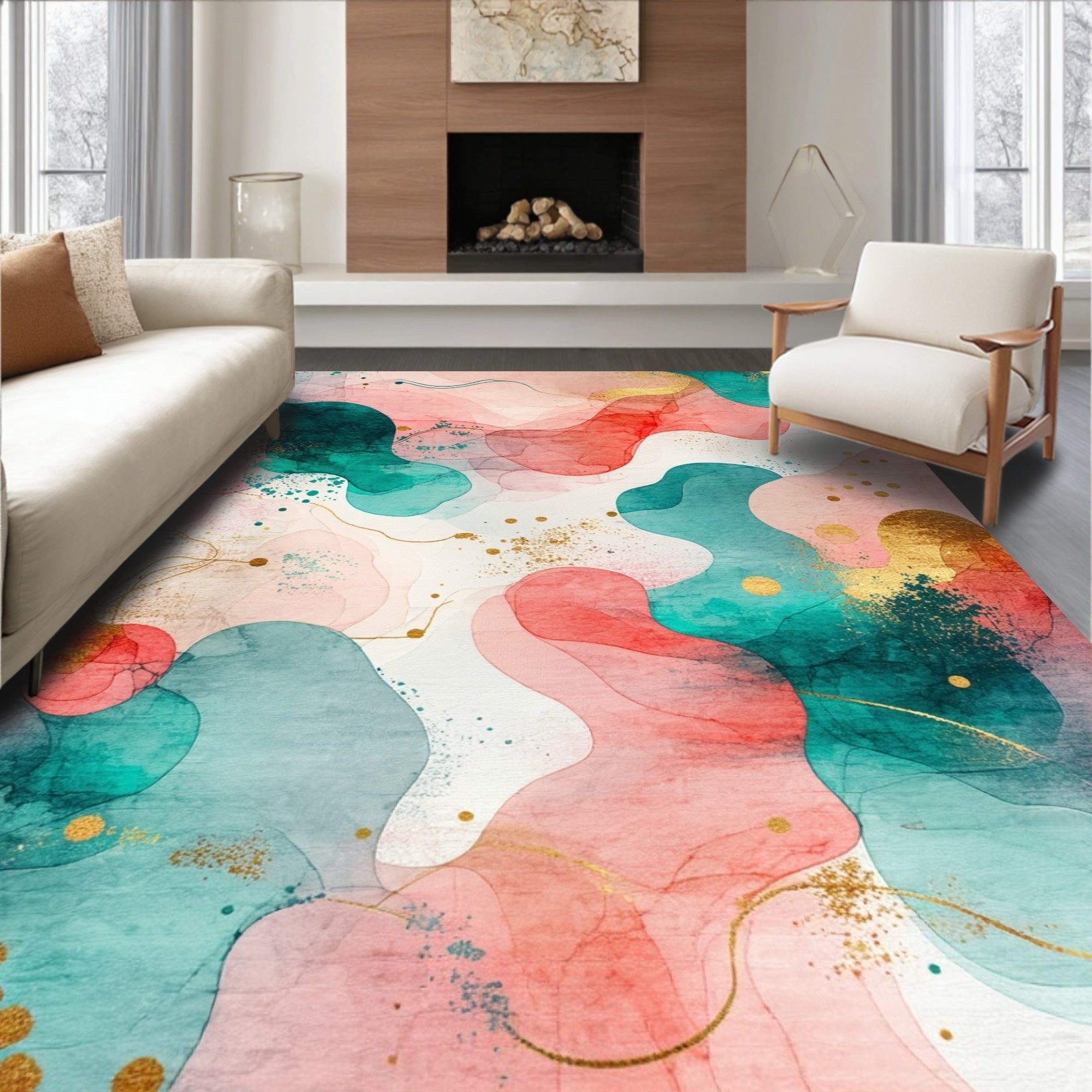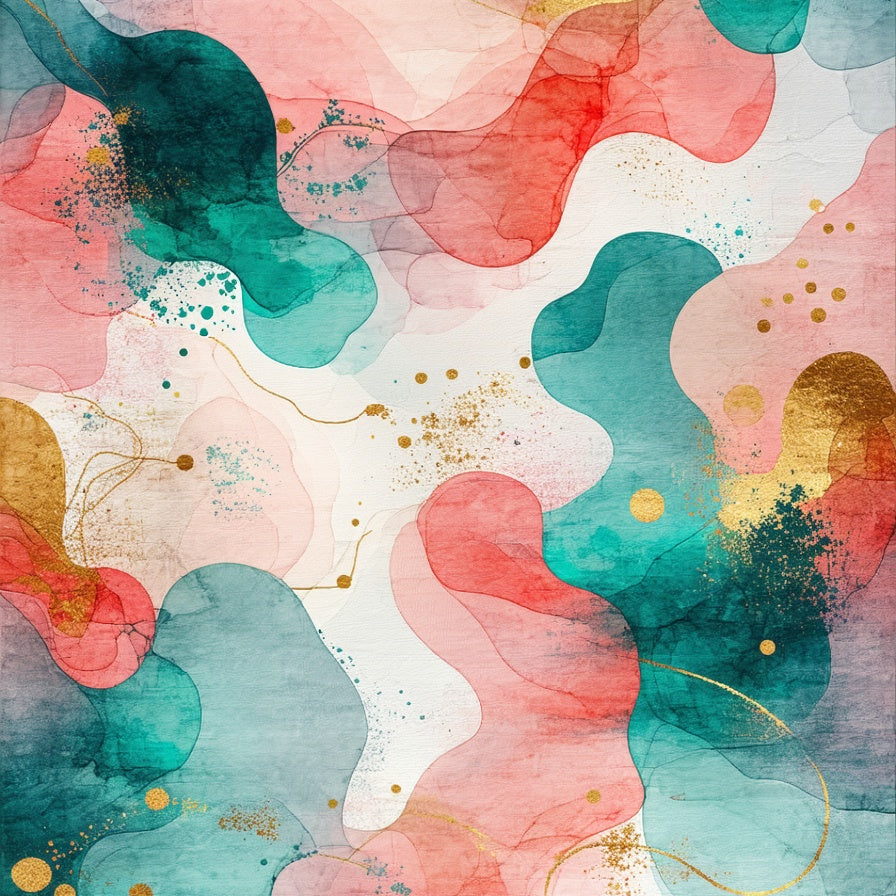 Abstract Watercolor Coral & Teal Design(Pink)