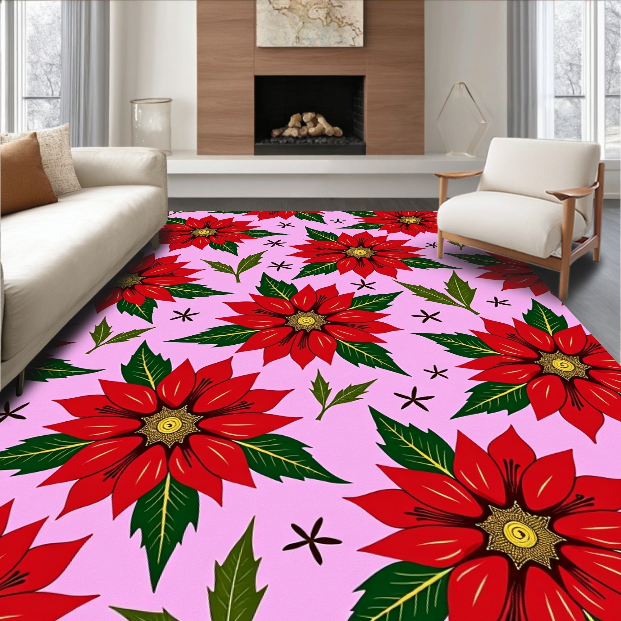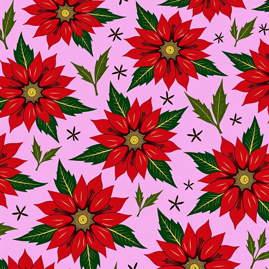 Poinsettia Bloom with Holiday Flower Motifs(Pink)