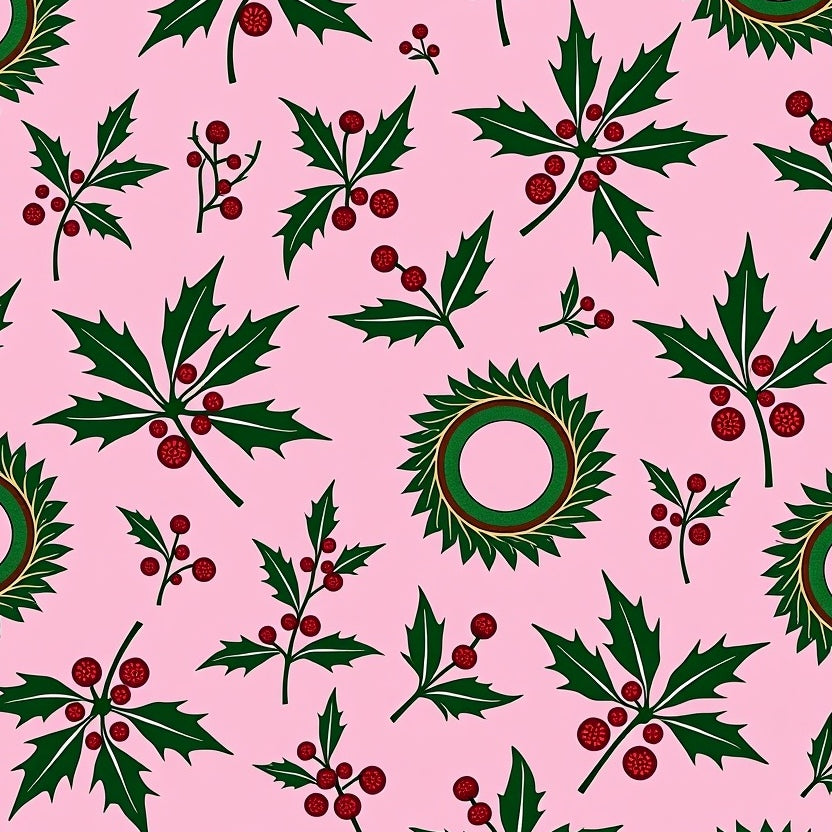 Abstract Holly Berry Branch Decorative Nature Inspired(Pink)